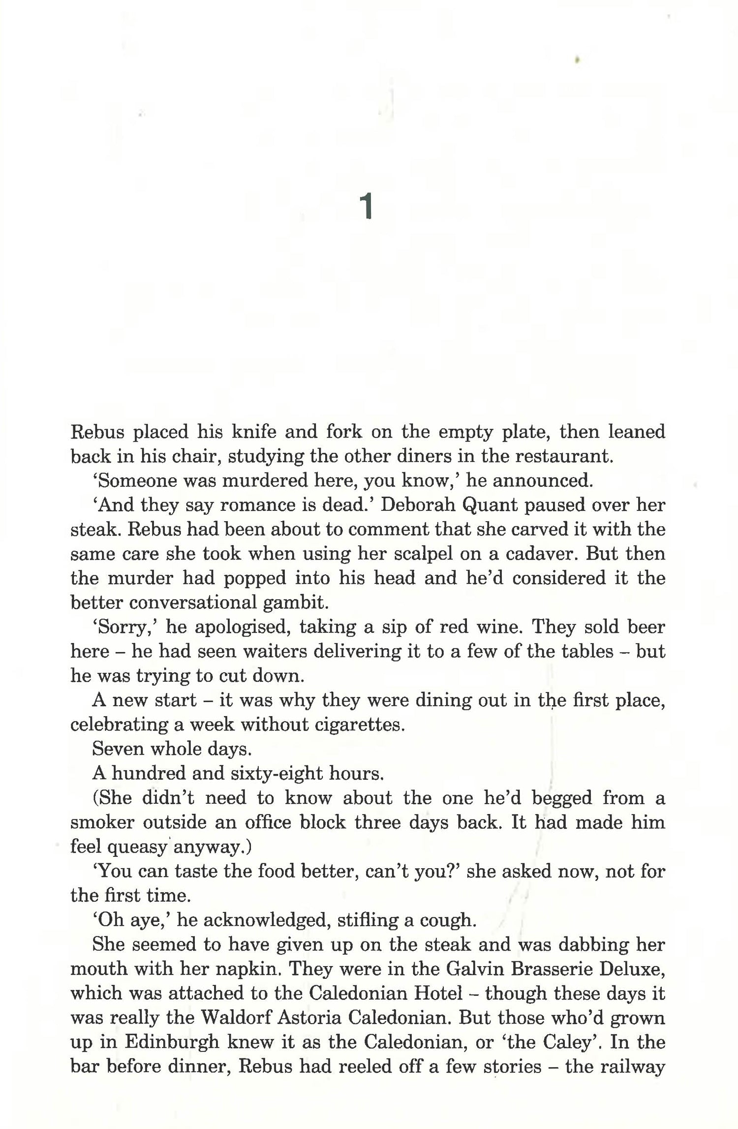 As he connects the mysteries of the past to the those of the present, Rebus learns - the hard way - that he's not the only one with an insatiable curiosity about what happened in that hotel room forty years ago, and that someone will stop at nothing to ensure that the crime remains ancient history.