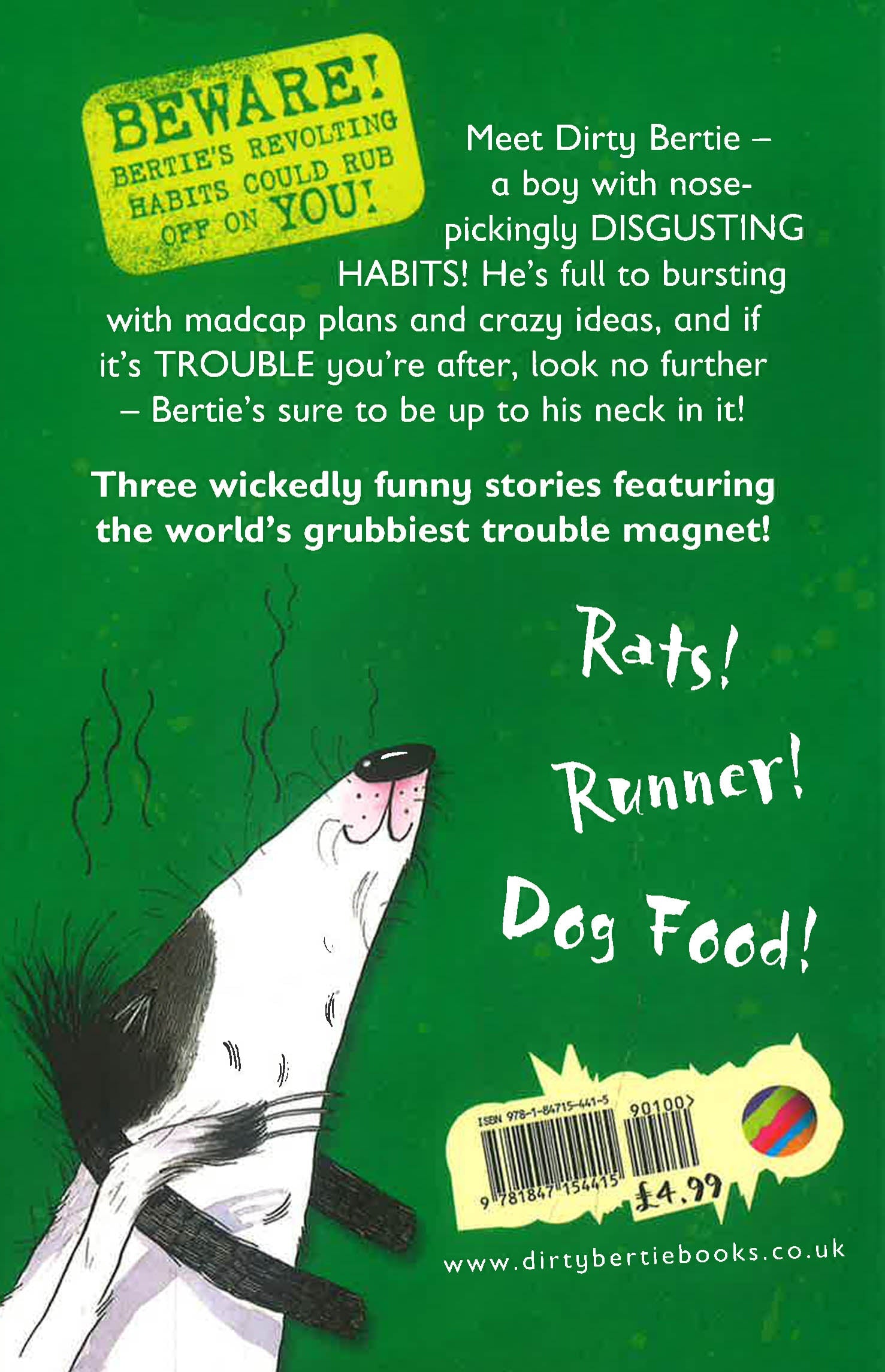 Join Dirty Bertie, everyone's favourite trouble magnet, as he crosses paths with a cheeky rodent, takes part in a chaotic cross-country run, and tries to get his dog Whiffer to eat healthily - with disastrous results! Calling all Dirty Bertie fans! Dirty Bertie - the boy with nose-pickingly disgusting habits - is back for another helping of comic chaos! With ever-increasing madcap schemes and crazy capers, Bertie continues to delight his legions of fans who revel in his revolting ways. Join Bertie in Rats! his 23rd adventure, as he crosses paths with a cheeky rodent, takes part in a chaotic cross-country run, and tries to get his dog Whiffer to eat healthily - with disastrous results! Dirty Bertie is a hugely popular series created by award-winning illustrator, David Roberts (Tyrannosaurus Drip, The Wind in the Willows, The Troll, Eddie Dickens Trilogy). With each hilarious story approximately thirty pages long and split into chapters with illustrations on nearly every spread, Dirty Bertie is ideal for confident readers to enjoy by themselves, or for sharing with your child.