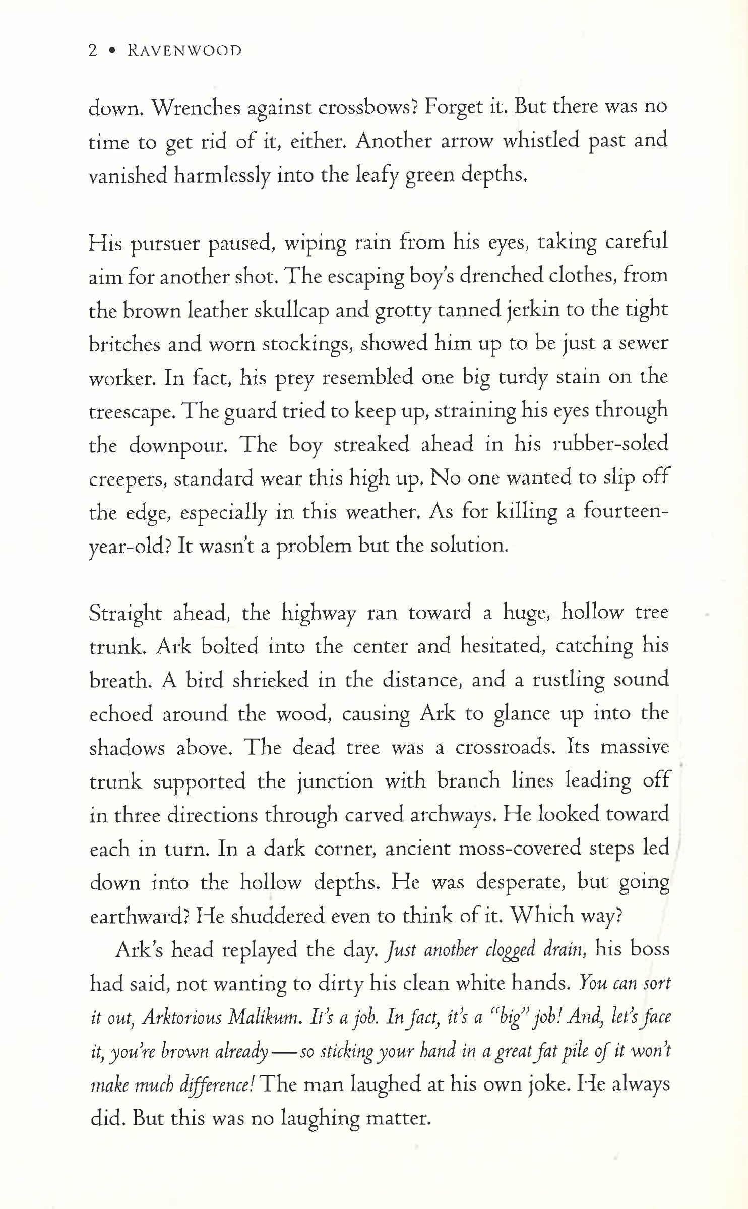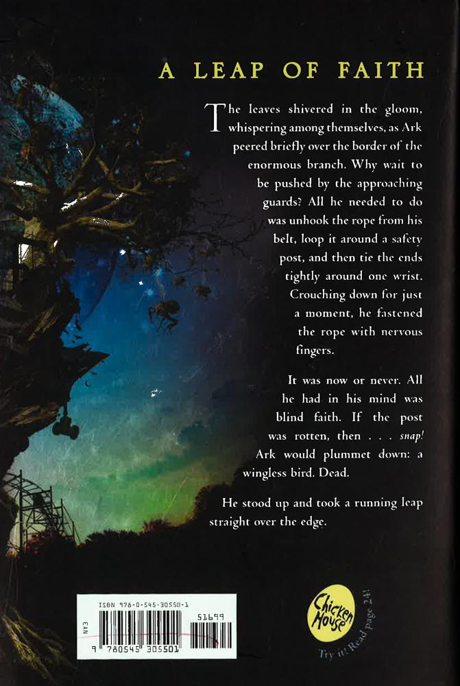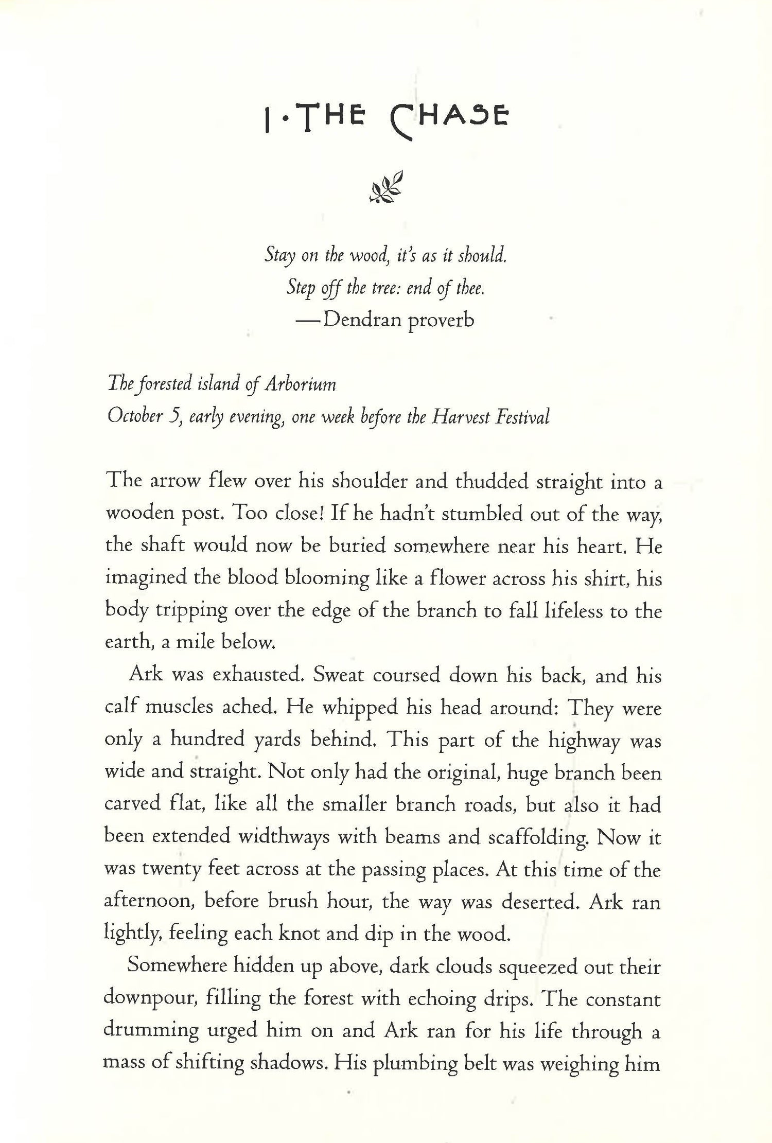 Who holds the seeds to save a sky-high world? Arborium is at risk, the sharpened blades of rival Maw poised to saw off its bark and branches. What can a poor plumber's apprentice armed with little more than a monkey wrench do to stop the chopping? Carved into a massive, mile-high canopy, the forest kingdom of Arborium stands upon the tallest of trees. Within them, 14-year-old Ark holds the lowest of jobs: unclogging toilets. He's already up to his elbows in gunk when he REALLY steps in it. He overhears a plot echoing through the pipes: Maw, a ruthless glass-and-steel superpower, is scheming to wield its axes of evil to strip Arborium of its wood -- a natural resource now more precious than gold. The fate of a kingdom in the filthy hands of a plumber boy? Plunged into danger, Ark must make the treacherous climb down to the darkest roots of RAVENWOOD if there's any hope of rescuing his threatened tree home!