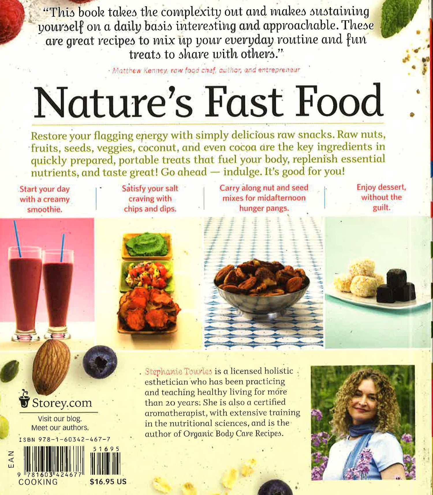 Its time to rescue snacks from the realm of empty-calorie packaged junk food and transform everyday pick-me-ups into healthful, satisfying mini meals. Why waste calories on cookies or chips that have no nutritional value and provide only short-term satisfaction when raw foods are delicious, simple to prepare, and bursting with natural energy boosters that everybody needs to stay fit and healthy? Thanks to Raw Energy, it has never been easier to add a full spectrum of raw ingredients to a healthful lifestyle. Author Stephanie Tourless 125 recipes for trail mixes, parfaits, energy bars, juice blends, smoothies, soups, vegetable chips, zippy dips, candies, and cookies combine raw ingredients in delicious snacks that are chock-full of nutrients and long-term energy boosters. Made from real, whole foods that are uncooked, unadulterated, and unprocessed, these snacks are 150- to 250-calorie packages of health and vitality, dense with naturally occurring vitamins, minerals, fiber, and enzymes. The snacks in Raw Energy do not rely on refined white flour or sugar, they are not cooked in any way, and, with the exception of honey, they do not use animal products. They do include raw nuts and seeds, nut butters, dried and fresh fruits, oats, carob, cocoa, freshly extracted juices, and vegetables. They taste great and are easy to digest. Tourles provides a complete overview of the benefits of raw foods, along with an introduction to "uncooking" techniques and an ingredient-by-ingredient food guide. For anyone looking for more nutritional punch from low-calorie snacks, Raw Energy provides 125 tasty starting points.