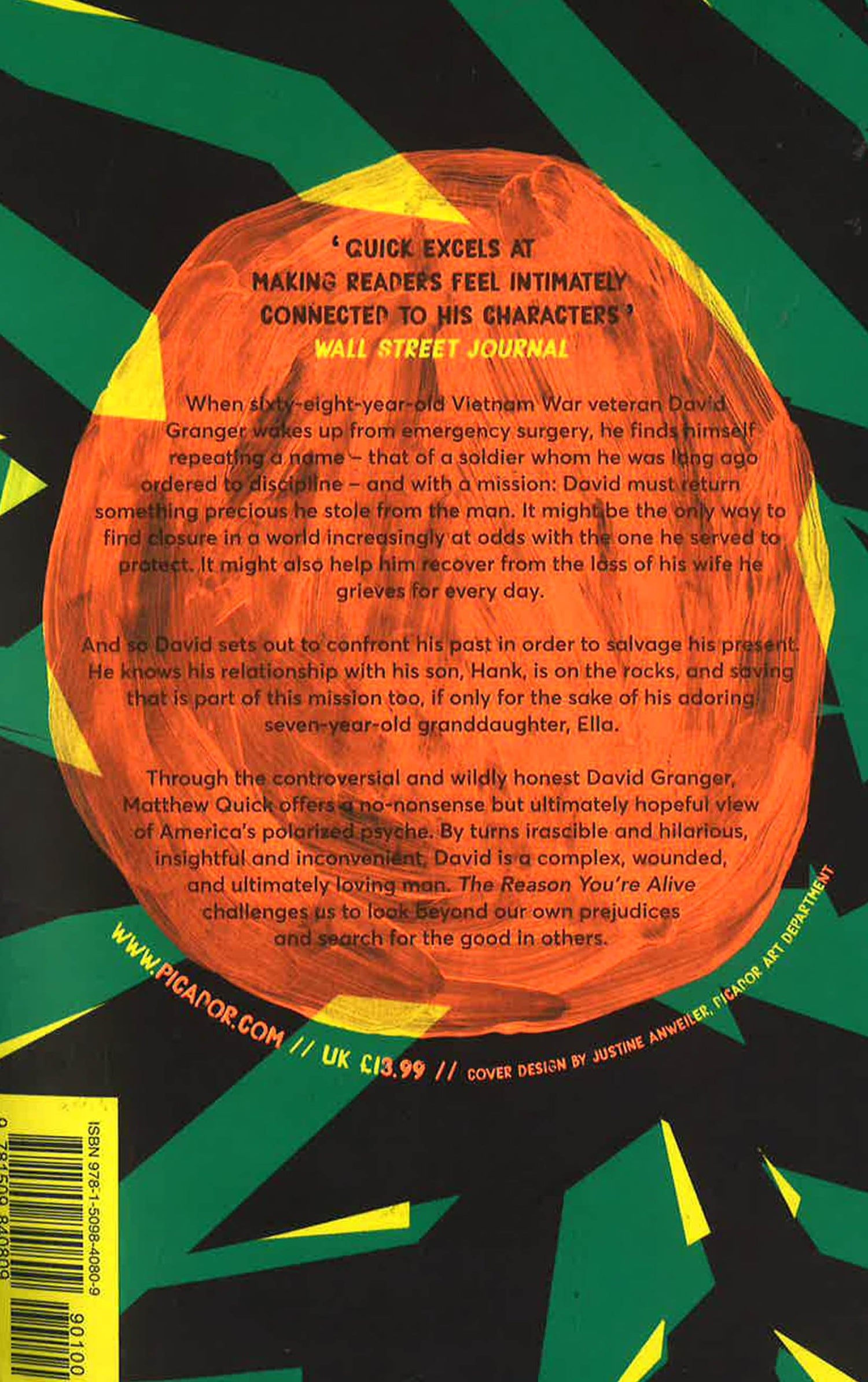 The New York Times-bestselling author of The Silver Linings Playbook offers a timely novel featuring his most fascinating character yet, a Vietnam vet embarking on a quixotic crusade to track down his nemesis from the war. After sixty-eight-year-old David Granger crashes his BMW, medical tests reveal a brain tumor that he readily attributes to his wartime Agent Orange exposure. He wakes up from surgery repeating a name no one in his civilian life has ever heard - that of a Native American soldier whom he was once ordered to discipline. David decides to return something precious he long ago stole from the man he now calls Clayton Fire Bear. It might be the only way to find closure in a world increasingly at odds with the one he served to protect. It might also help him finally recover from his wife's untimely demise.As David confronts his past to salvage his present, a poignant portrait emerges: that of an opinionated and goodhearted American patriot fighting like hell to stay true to his red, white, and blue heart, even as the country he loves rapidly changes in ways he doesn't always like or understand. Hanging in the balance are Granger's distant art-dealing son, Hank; his adoring seven-year-old granddaughter, Ella; and his best friend, Sue, a Vietnamese-American who respects David's fearless sincerity.Through the controversial, wrenching, and wildly honest David Granger, Matthew Quick offers a no-nonsense but ultimately hopeful view of America's polarized psyche. By turns irascible and hilarious, insightful and inconvenient, David is a complex, wounded, honorable, and ultimately loving man. The Reason You're Alive examines how the secrets and debts we carry from our past define us; it also challenges us to look beyond our own prejudices and search for the good in our supposed enemies.