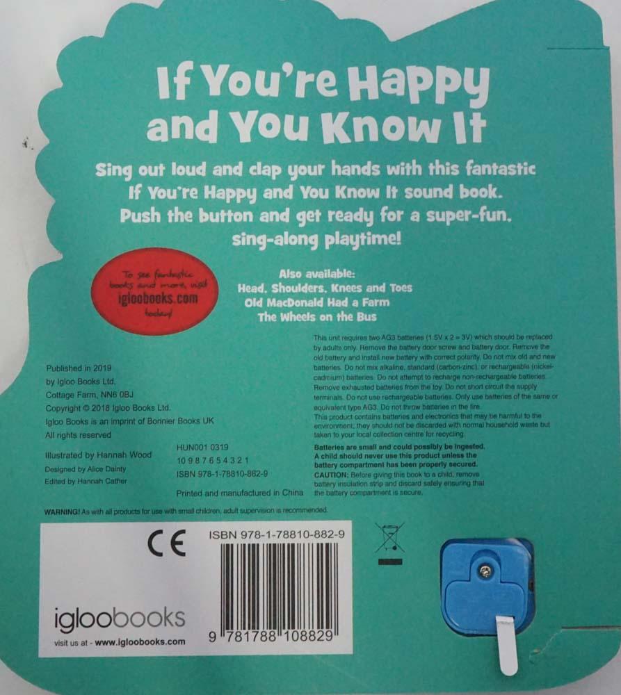 Sing out loud and clap your hands with this fantastic If You’re Happy and You Know It sound book. Push the button and get ready for a super-fun, sing-along playtime!