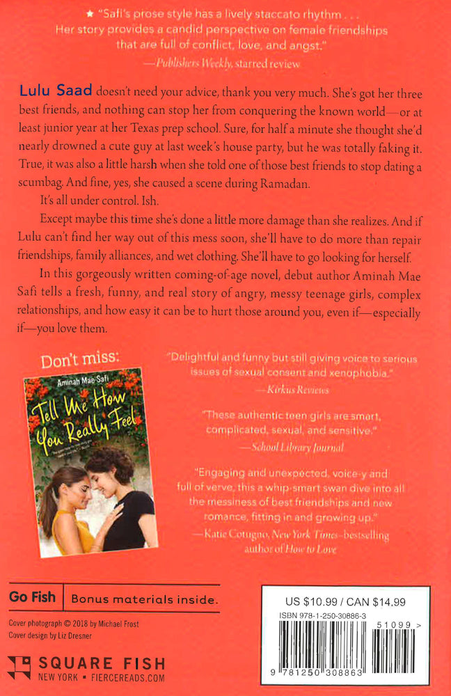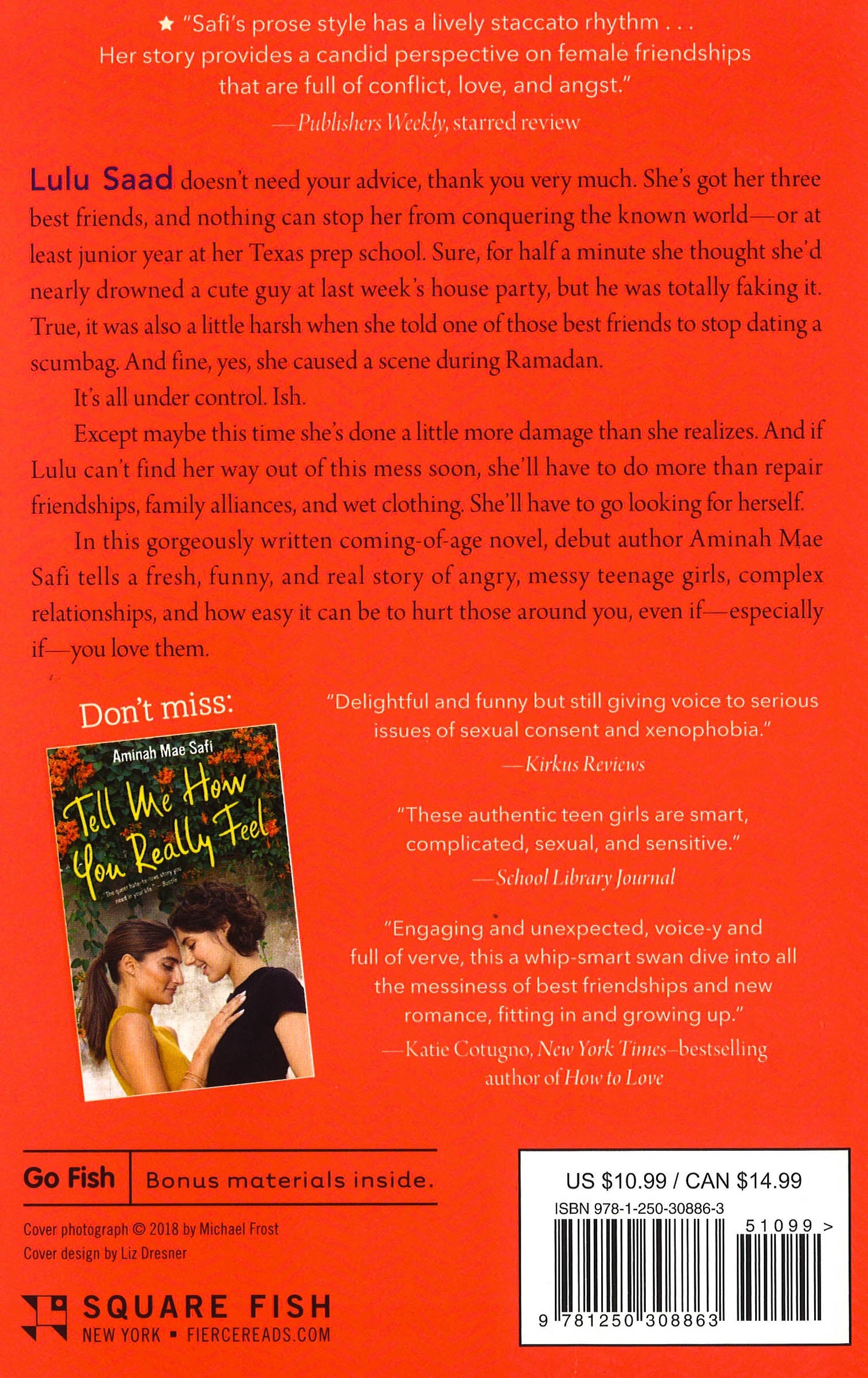 Lulu Saad doesn't need your advice, thank you very much. She's got her three best friends, and nothing can stop her from conquering the known world. Sure, for half a minute she thought she'd nearly drowned a cute guy at a party, but he was totally faking it. And fine, yes, she caused a scene during Ramadan. It's all under control. Ish.Except maybe this time she's done a little more damage than she realises. And if Lulu can't find her way out of this mess soon, she'll have to do more than repair friendships, family alliances, and wet clothing. She'll have to go looking for herself.Debut author Aminah Mae Safi's honest and smart novel is about how easy it can be to hurt those around you even if - especially if - you love them.