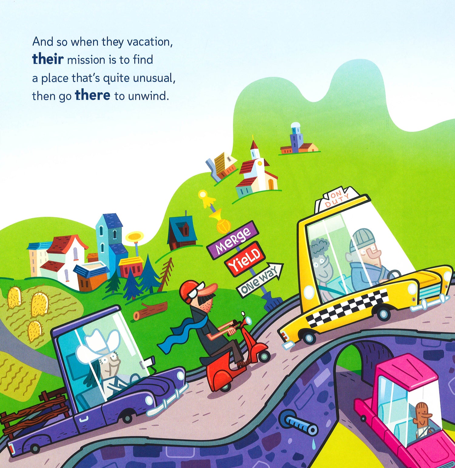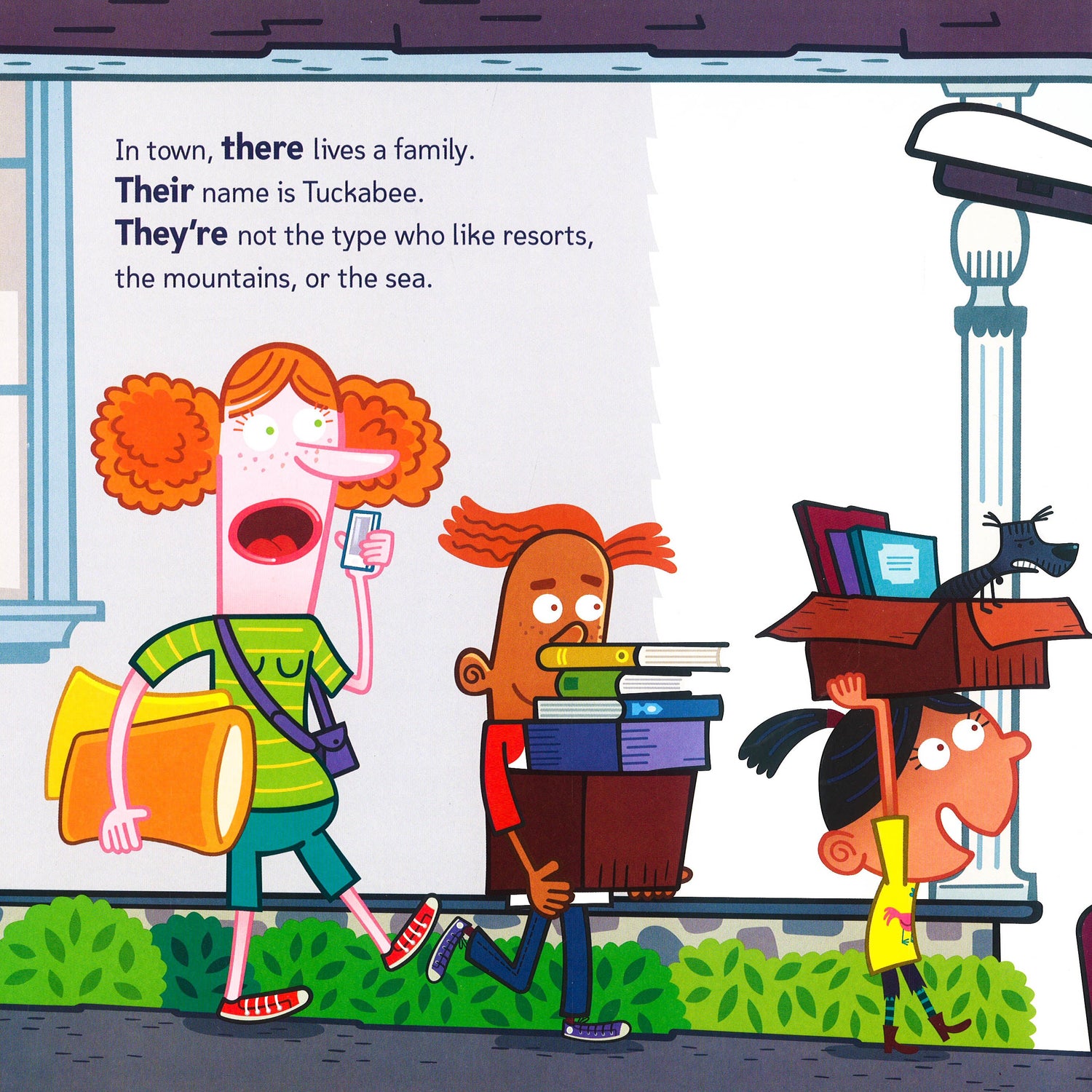 Meet the Tuckabees. They're going on vacation. But not an ordinary vacation. They always choose the wackiest, weirdest destinations for their family trips. This year their stops include visits to the world's largest underwear, a narwhal petting zoo, and the amazing Cheezie Popz factory. No matter where this family goes, they're sure to have tons of fun when they get there. Come along for the ride--and along the way, learn to tell apart they're, their, and there. These words sound alike, but they're different in meaning. Figure out how to keep them straight as you join the Tuckabees on their adventures.