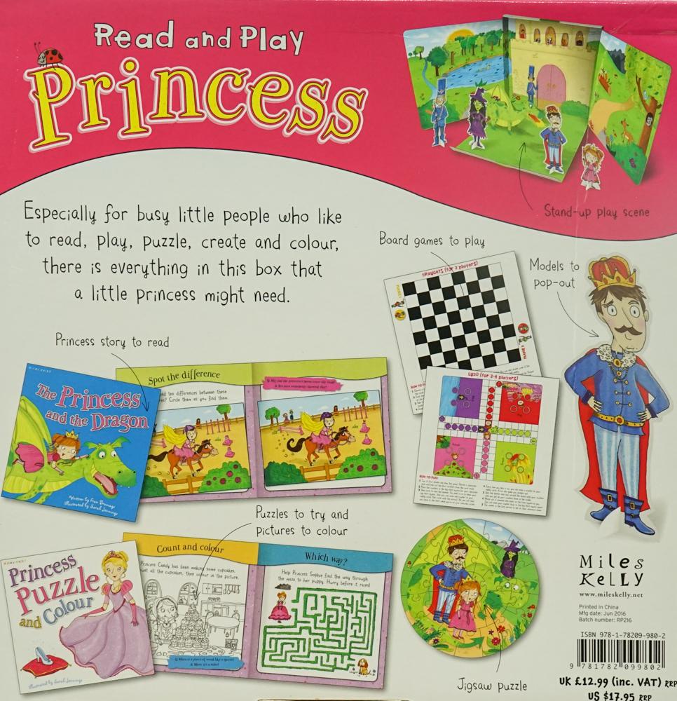 Read and Play Princess is a wonderful activity box for children aged 5+. Designed to include everything a younger reader might need for an awesome mini-adventure, the Read and Play Princess box contains a beautifully illustrated full-colour 24-page picture book, as well as four 3D models of the characters to pop out and play with on a fold-out play scene. There's also a great princess puzzle and colouring book, and a 27-piece jigsaw to try too. What more could you need in one perfectly princessy play box!