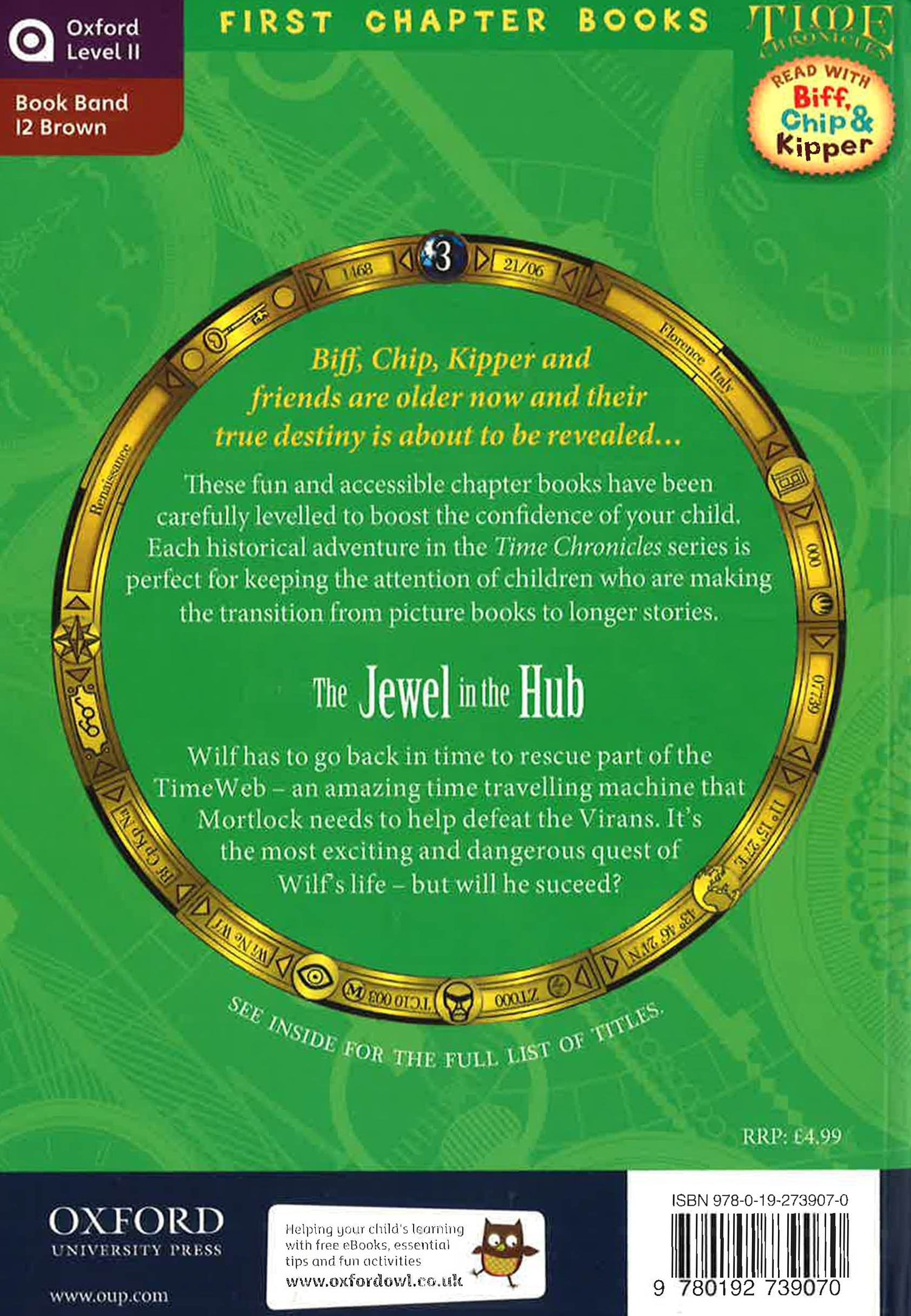 Biff, Chip, Kipper and friends are older now and their true destiny is about to be revealed. Join them as they embark on the mission of a lifetime! In Book 3, The Jewel in the Hub, Wilf time travels to 1468 and meets a helper in his mission of finding the TimeWeb. They come face to face with the Virans - can they protect the Hub and get back to safety? Time Chronicles is a series of fun and accessible chapter books perfect for moving your child on from picture books to longer stories. Each book in the series is a thrilling story in its own right, as the children fight to save the world from the evil Virans. The books are carefully levelled to boost the confidence of the child, whilst also introducing more vibrant and interesting vocabulary. They are perfect for keeping the attention of all children with fast paced action. Set in a real historical time with characters from the past, these books are packed full of extras including questions, historical fact files, character information, photos, artwork and glossaries. Support for parents is also included.