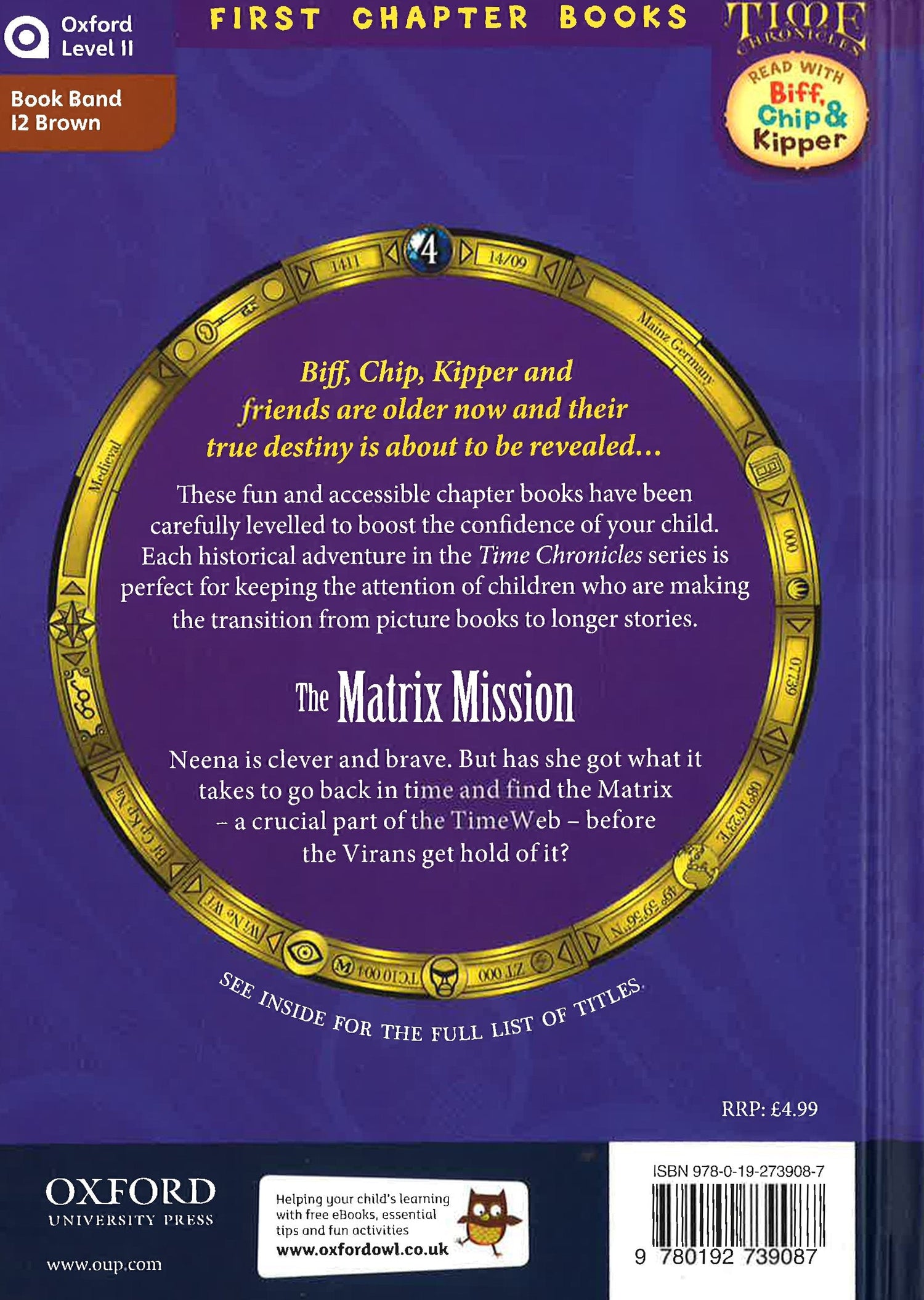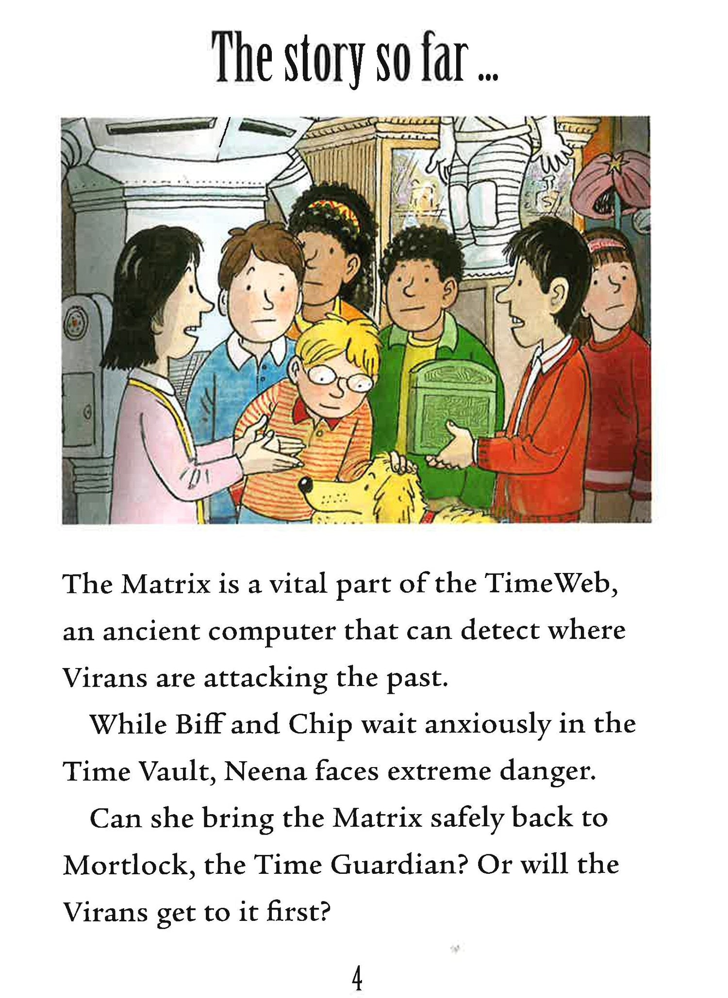 Biff, Chip, Kipper and friends are older now and their true destiny is about to be revealed. Join them as they embark on the mission of a lifetime! In Book 4, The Matrix Mission, it's Neena's turn to time travel. The Virans are hot on her tail and demand the next piece of the TimeWeb. Will she be as lucky as Wilf and make it back with the Matrix?