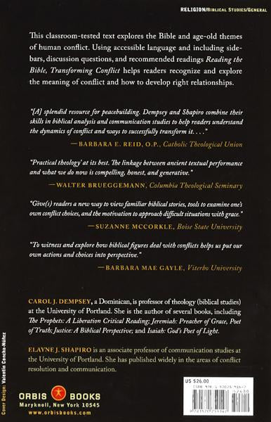 An interaction between biblical studies and communication studies that demonstrates how understanding situations of conflict in the Bible can help develop skills in dealing with conflict today. Each of eleven chapters presents a biblical story (from Adam and Eve through the letters of Paul) that examines some aspect of conflict intrapersonal, interpersonal, or between humans and God. Each chapter takes up a particular theme the nature of conflict, the role of identity, the need for forgiveness, the use of power, the potential of mediation, the skills of negotiation, the possibility of reconciliation with the goal of helping students learn how to be in right relationship with one another and with God. Each chapter includes discussion questions, suggested readings, and sidebars to form an attractive text for undergraduates and general readers. Accessible language and tools to engage students are used throughout.