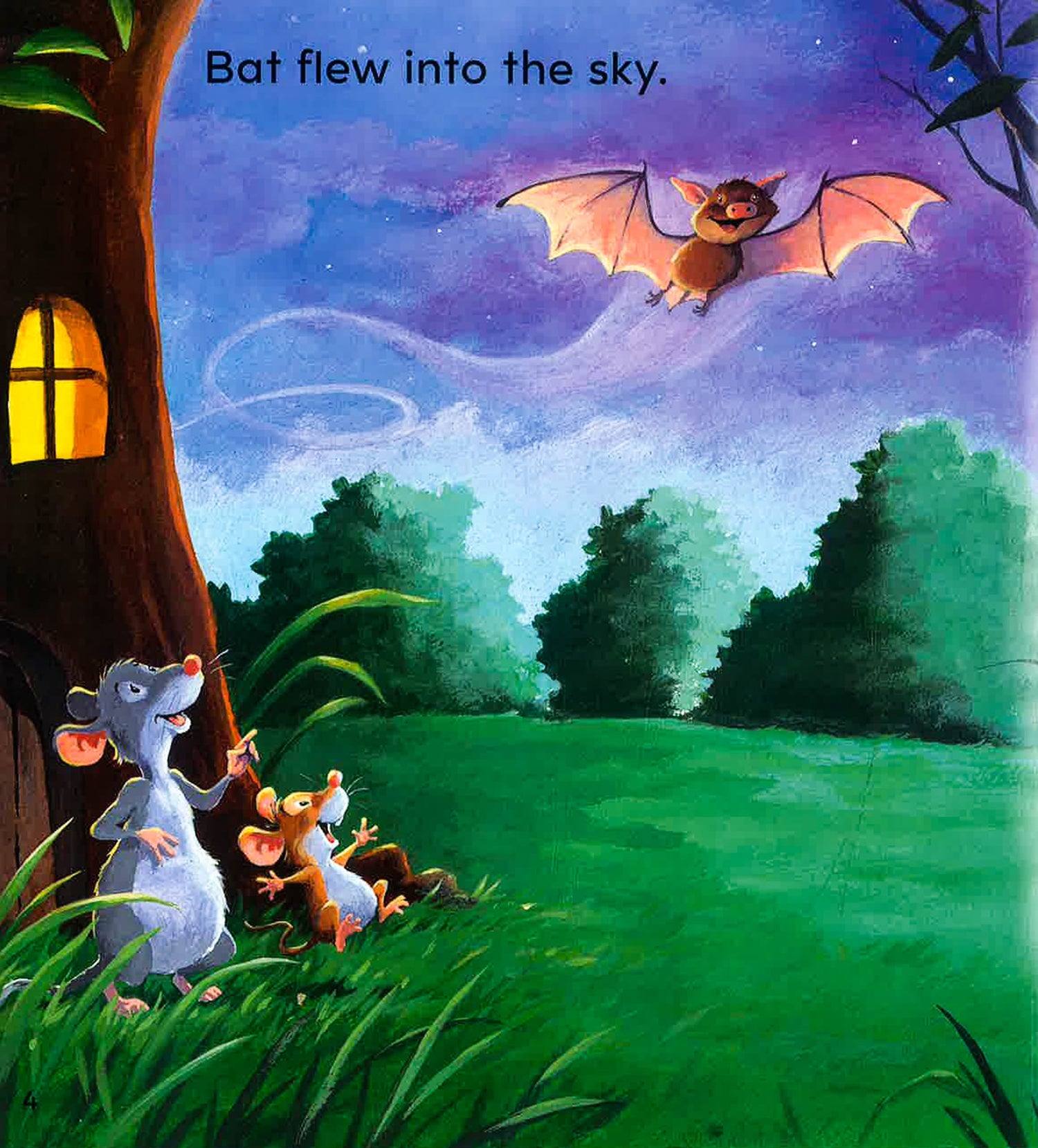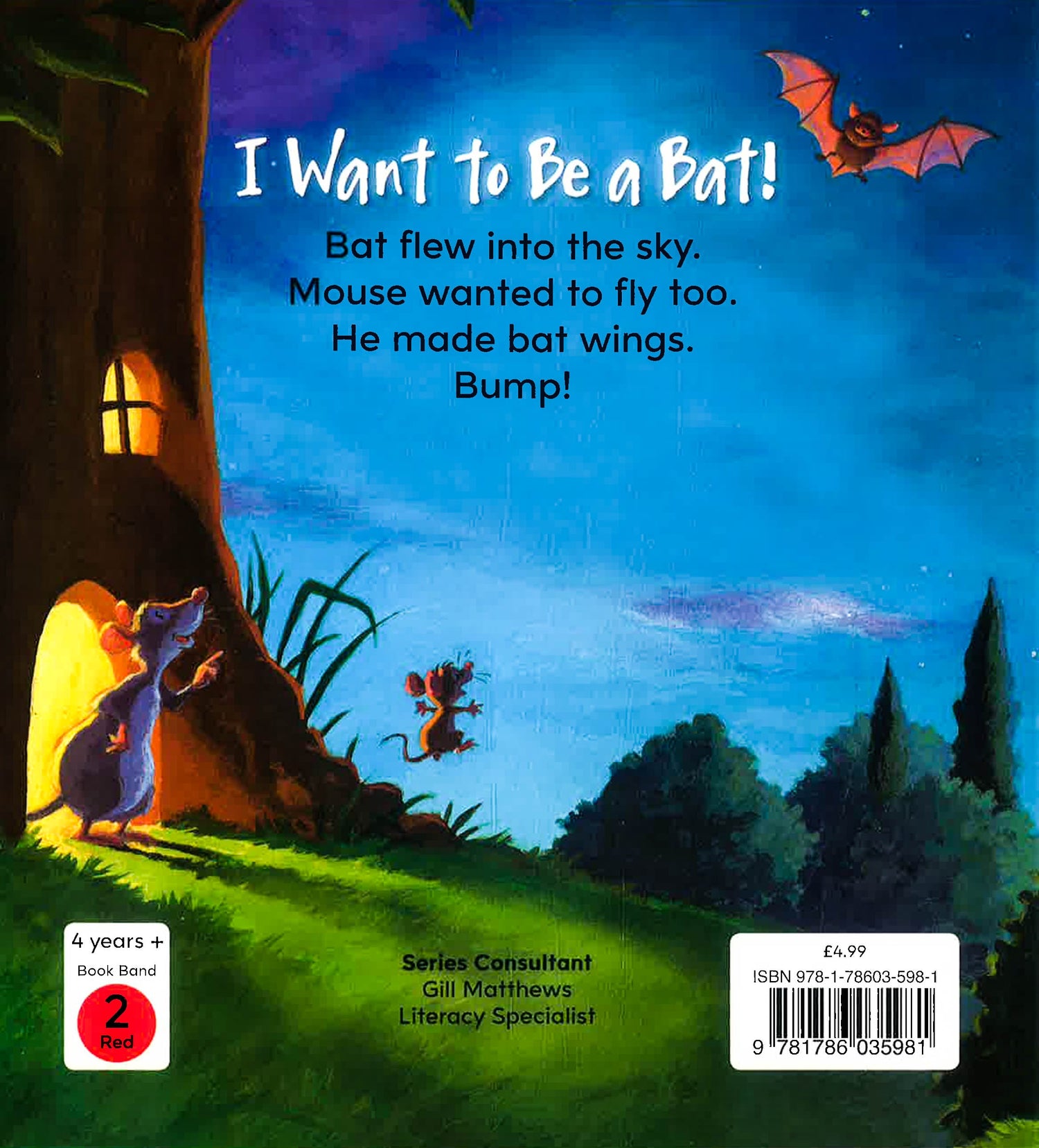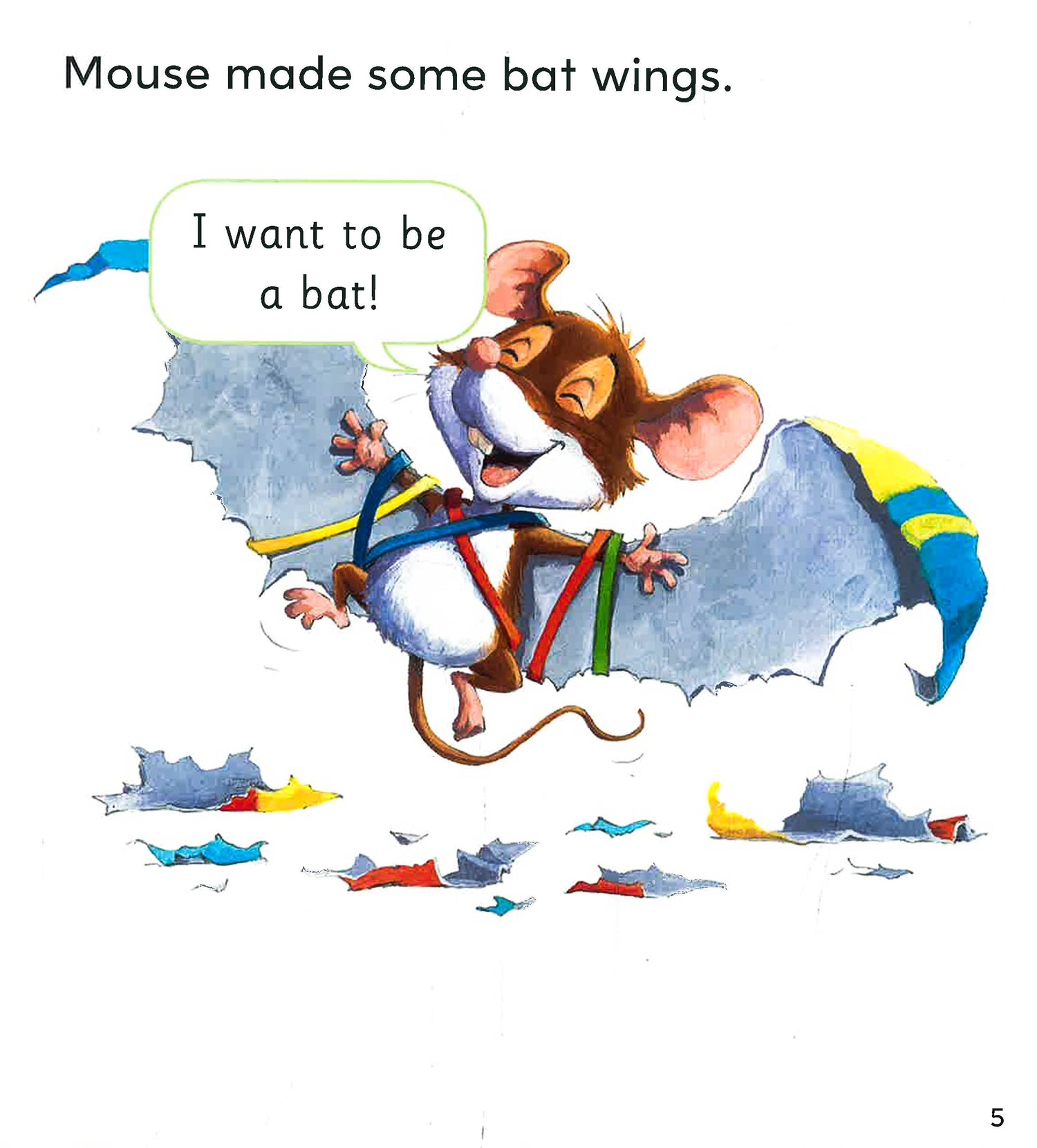 Mouse wants to fly like Bat. He wants to sleep upside down like Bat to, but he doesn't like eating moths! Yuck!