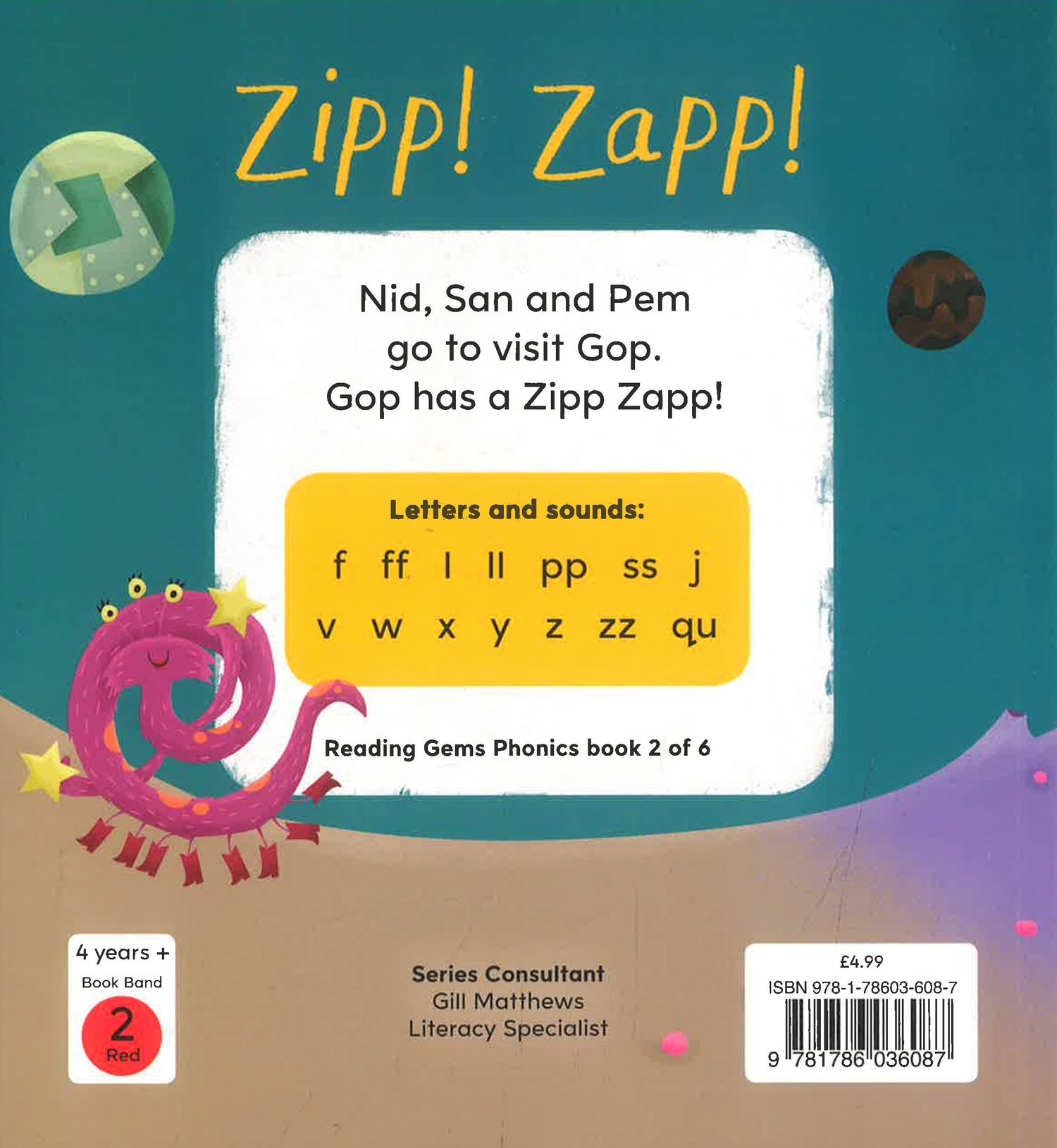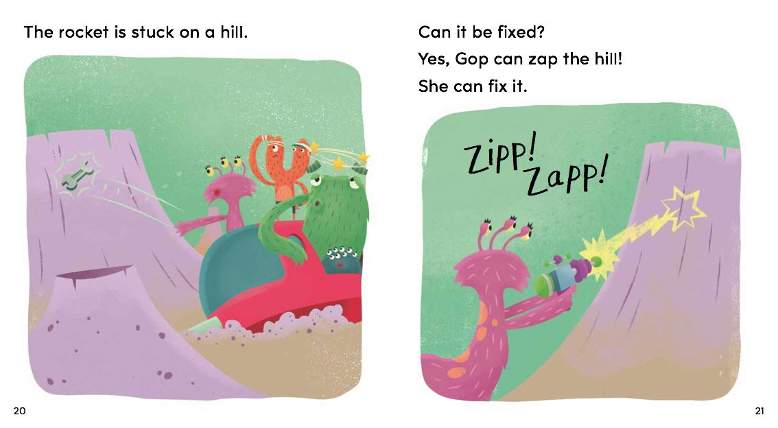 A fun story about Gop and her Zipp Zapp that includes focus letters and sounds. Reading Gems (phonics) features original stories, delightful characters and humorous illustrations.