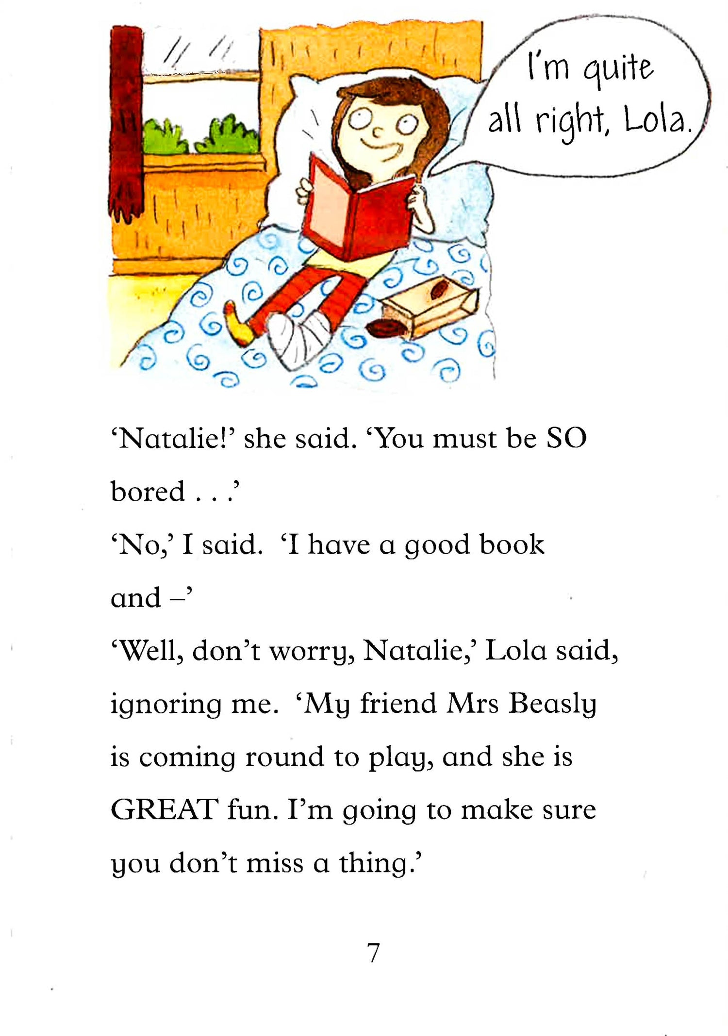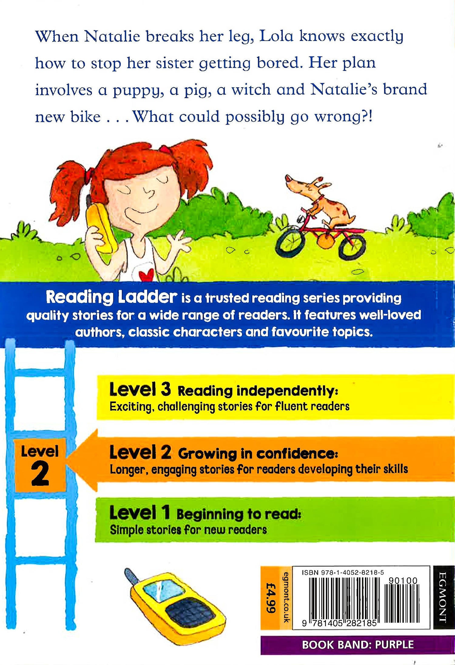 But Lola has a plan to keep Natalie from getting bored. It involves a walkie-talkie, her new imaginary friend Mrs Beasly, a puppy called Pebbles, a pig, an elephant and a witch. Oh, and Natalie’s brand new birthday bike that she only got to ride once…