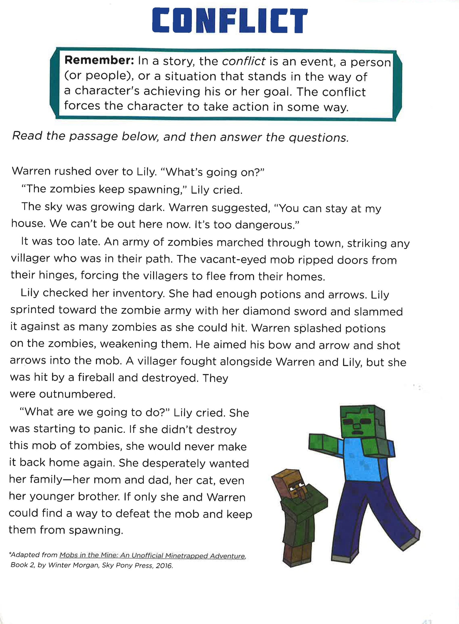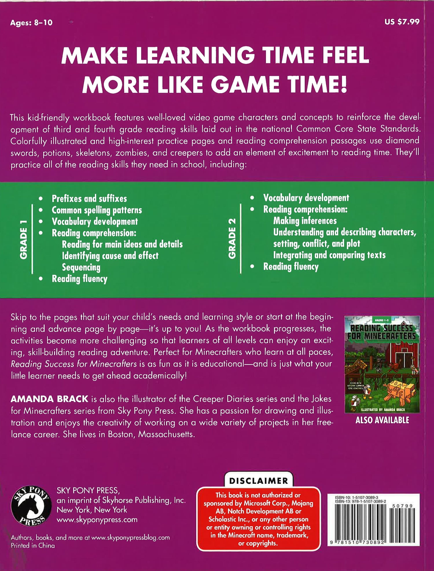 This kid-friendly workbook features well-loved video game characters and concepts to reinforce the development of third and fourth grade reading skills laid out in the national Common Core State Standards. Colorfully-illustrated and high-interest practice pages and reading comprehension passages use diamond swords, potions, skeletons, zombies, and creepers to add an element of excitement to reading time.