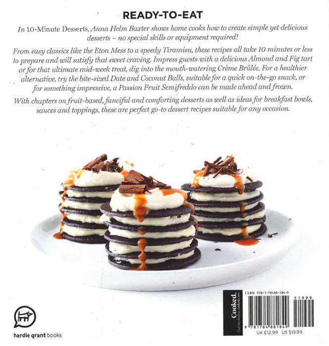 In 10-Minute Desserts, Anna Helm Baxter takes away the stress of baking and shows home cooks how to create simple yet delicious desserts that can be whipped up any night of the week - no special skill or equipment required! From easy classics like the Eton Mess, to a speedy Tiramisu served in individual cups, these recipes all take 10 minutes or less to prepare and will satisfy that sweet craving. Impress guests with a delicious Almond and Fig tart or for that ultimate mid-week treat, dig into the mouth-watering Creme Brulee. For a healthier alternative, try the bite-sized Date and Coconut Balls, suitable for a quick snack on-the-go snack, or for a fun twist on lollies, give the frozen Chocolate Banana Pops a go, drizzled with chocolate for extra appeal. With chapters on fruit desserts, celebration cakes and bakes, indulgent puds as well as ideas for breakfast bowls, sauces and toppings, these are perfect go-to dessert recipes suitable for any occasion.