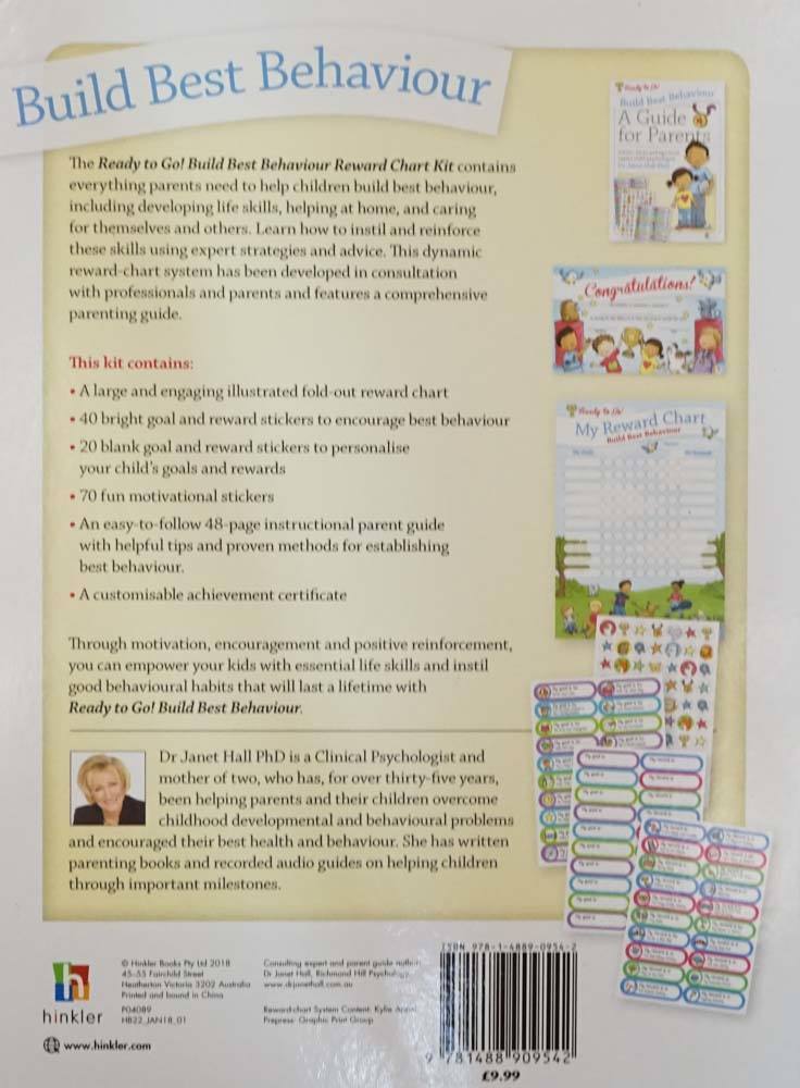 This kit contains a large and engaging illustrated fold-out reward chart, 40 bright goal and reward stickers to encourage best behaviour, 20 blank goal and reward stickers to personalise for your child, 70 fun motivational stickers, an easy-to-follow 48-page instructional parent guide with helpful tips and proven methods for establishing best behaviour, and a customisable achievement certificate.