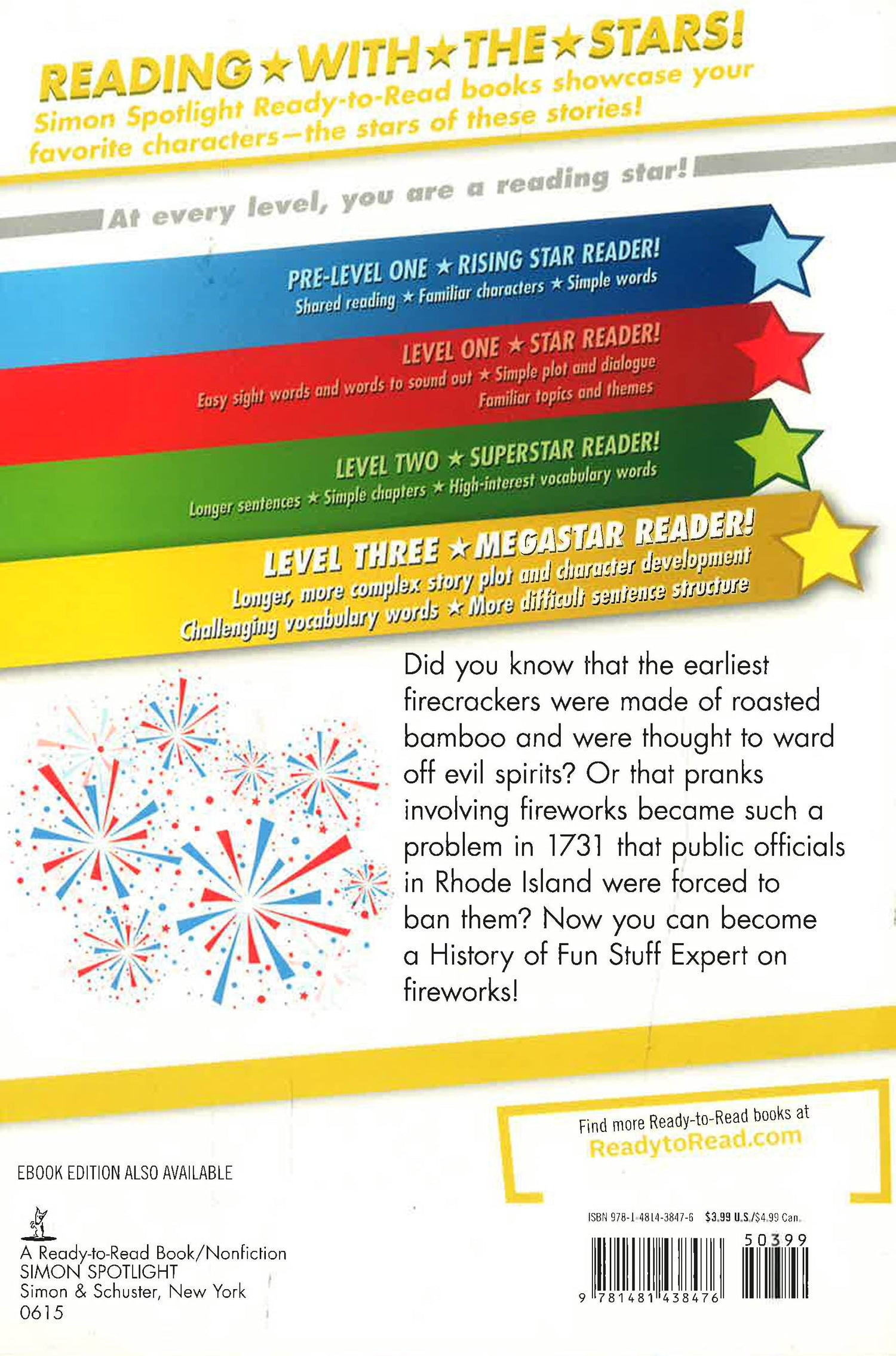 Light up the sky with this fact-tastic nonfiction Level 3 Ready-to-Read, part of a series about the history of fun stuff!