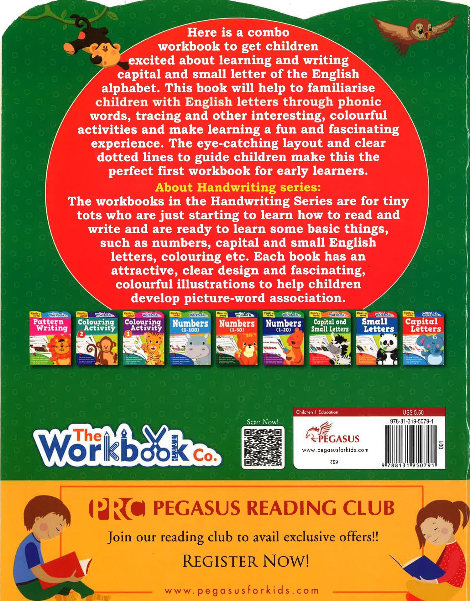 ere is a combo workbook to get children excited about learning and writing capital and small letter of the english alphabet. This book will help to familiarise children with english letters through phonic words, tracing and other interesting, colourful activities and make leaning a fun and fascinating experience. The eye-catching layout and clear dotted lines to guide children make this the perfect first workbook for early learners.