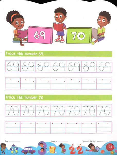 Here is wonderful workbook to get children excited about learning and writing numbers from 1 to 100. This book on numbers contains munber ttracing and other number-related activities accompanied with cute, colourful illustration to make learning a fun and easy experience. The eye-catching layout and clear dotted lines to guide children make this the perfect first workbook for early learners.