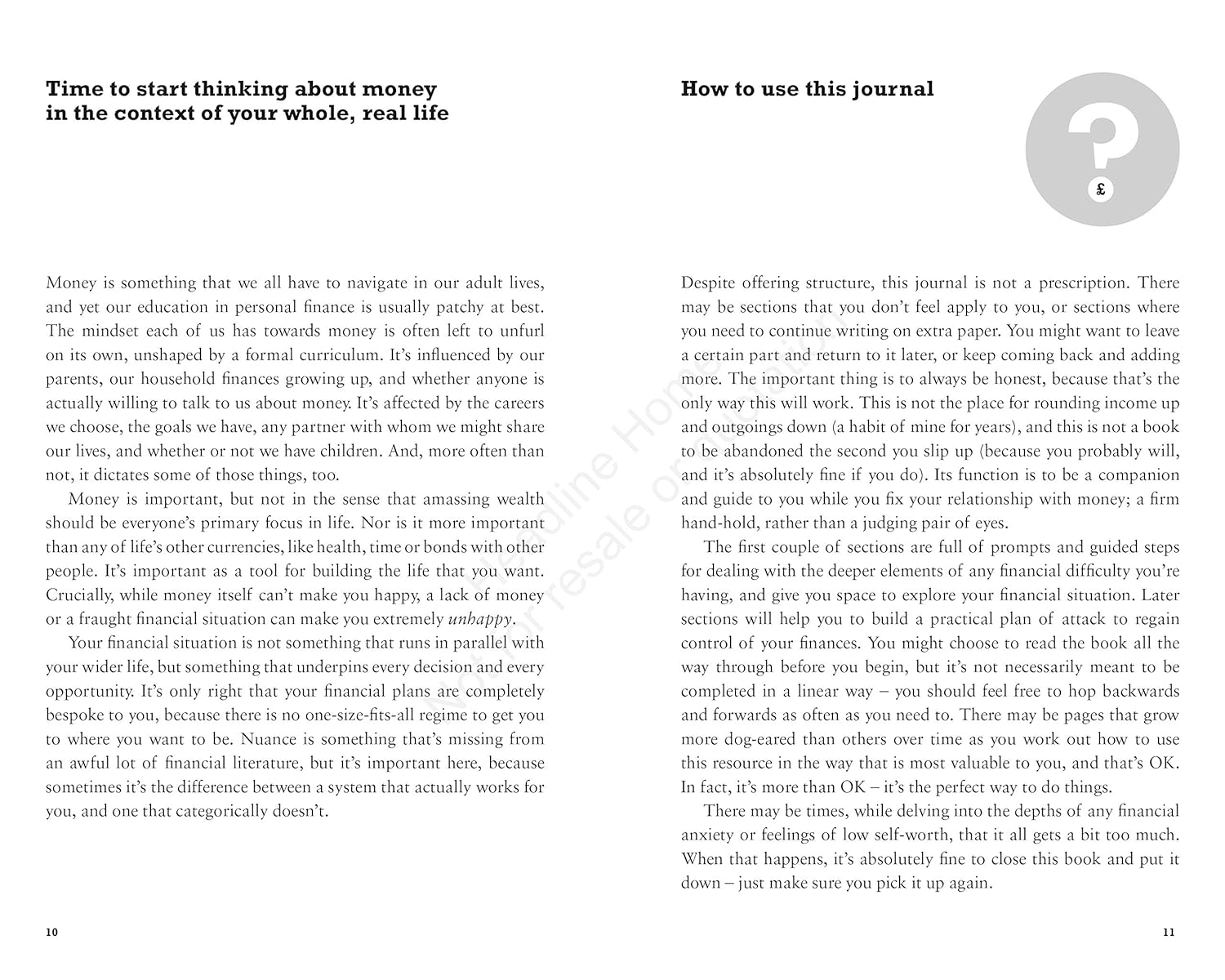 Real Life Money: The Journal is the first planner that targets the link between our emotional wellbeing and our financial situation. The result is a practical workbook for people who need something deeper than just expense tracking and meal planning. It guides the user through the steps required to recalibrate their finances on a deeper level, helping them to prepare for difficult conversations, set achievable goals, create their own personal budget - and then stay on track.