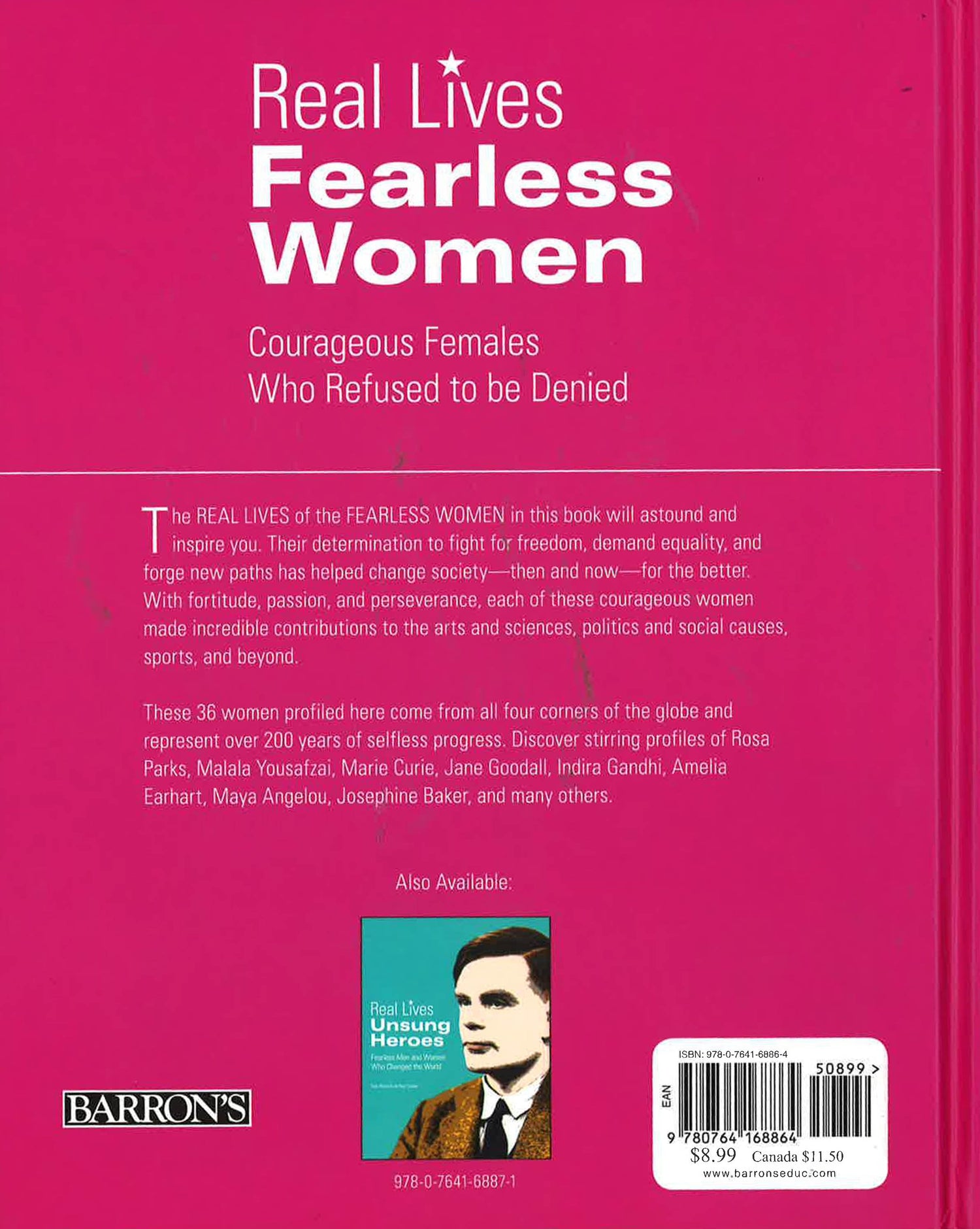 Through the Real Lives books, children will meet some remarkable individuals who refused to accept the status quo. Each entry in these riveting books explores how these individuals had an extraordinary impact on the world, coming from all four corners of the globe, all walks of life, and across many different disciplines. In Fearless Women, kids will discover stories about women who stood up for what they believed in and changed the world for the better. Includes Rosa Parks, Malala Yousafzai, Irena Sendler, Marie Curie, Jane Goodall, Indira Gandhi, Amelia Earhart, Maya Angelou, Josephine Baker, and more. There are women of science and medicine, war and peace, politicians and peacemakers, social activists and resistance fighters, and more. Bold color schemes and a stylized photograph or illustration of the subject make these books hard to resist. Children will be drawn to these visually appealing books and find the stories inside of them fascinating and thought-provoking.