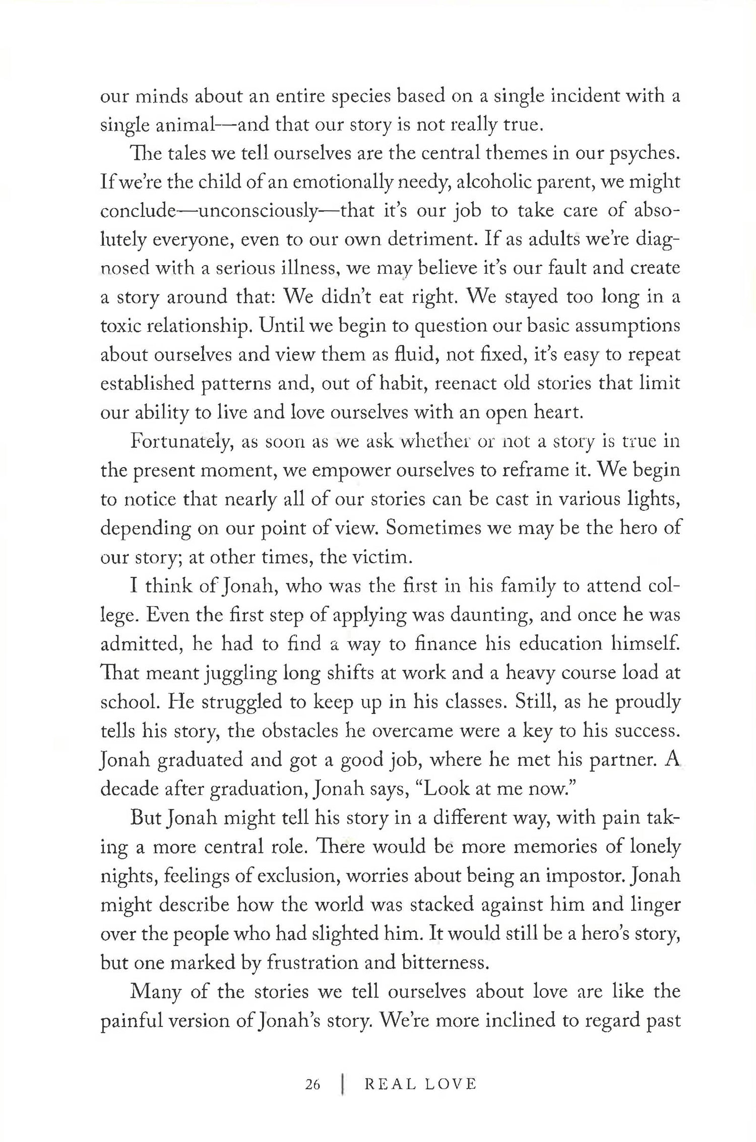 Real Love is a creative tool kit of mindfulness exercises and meditation techniques that help you to truly engage with your present experience and create deeper love relationships with yourself, your partner, friends and family, and with life itself.