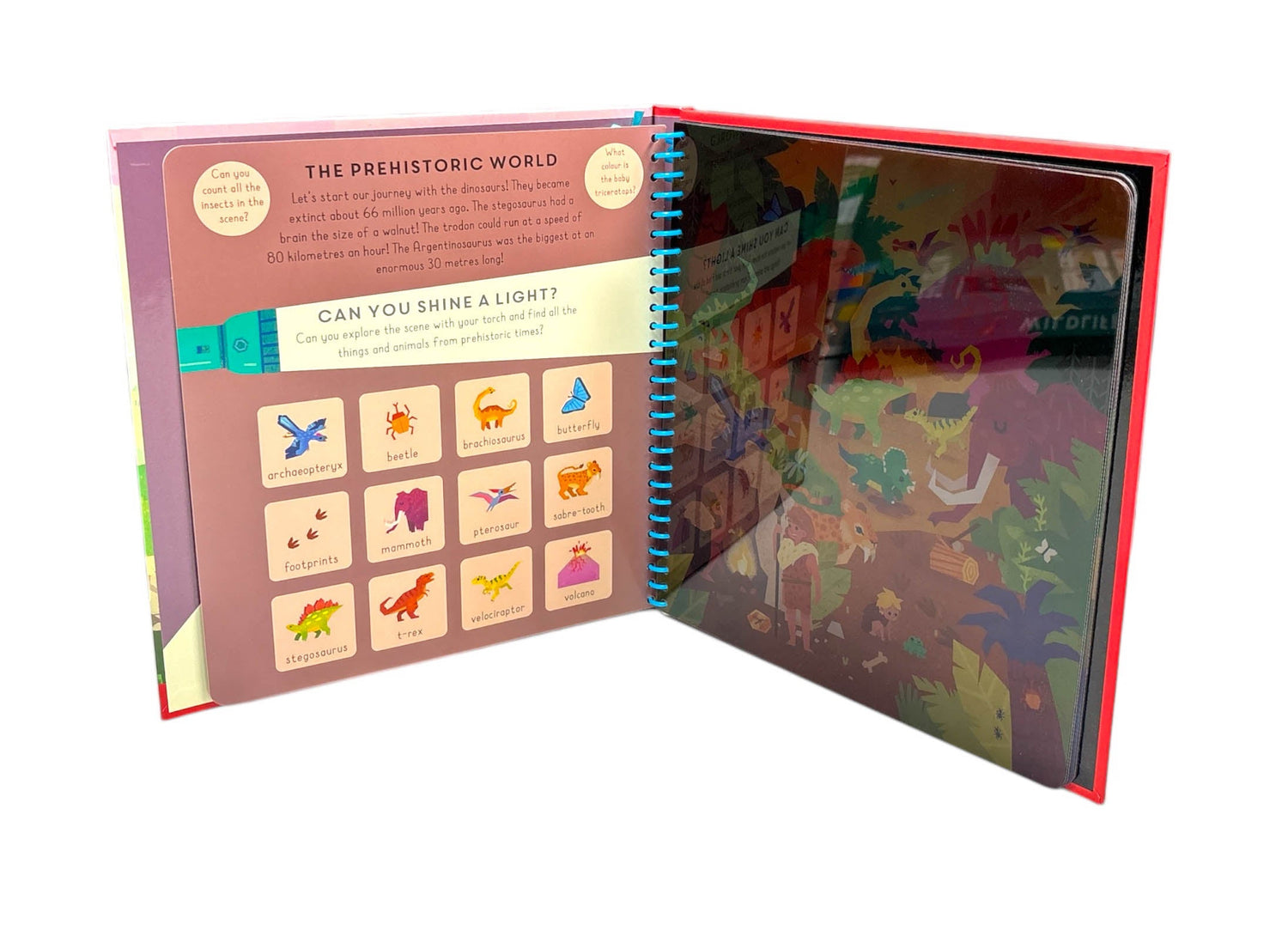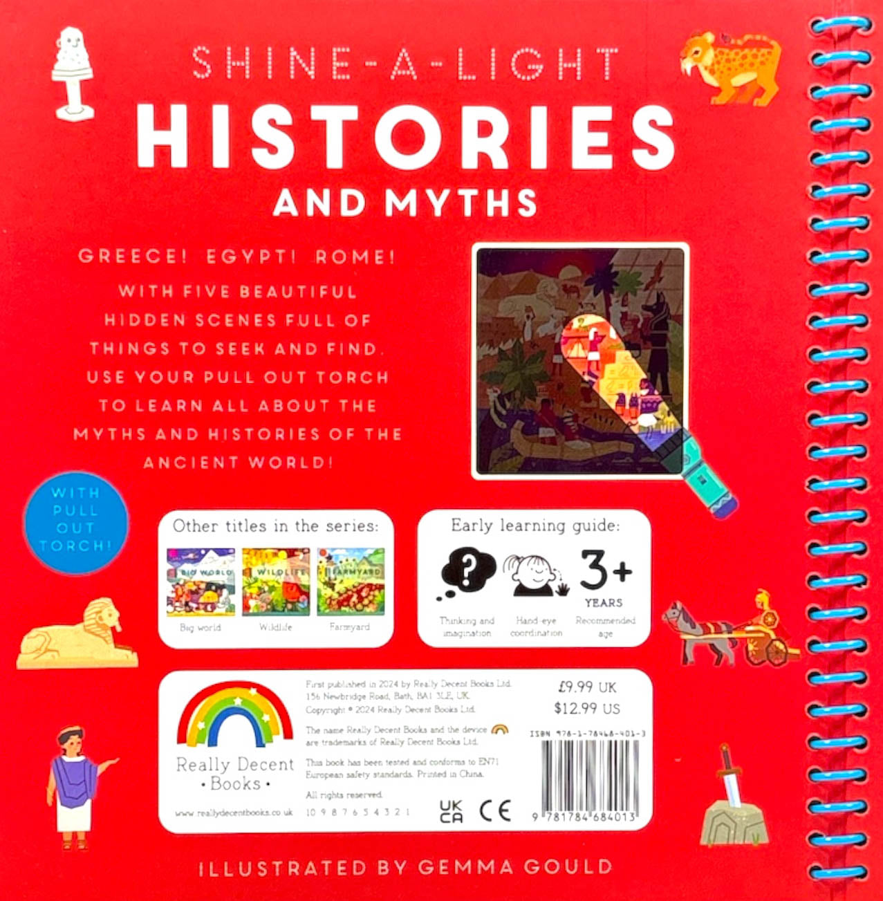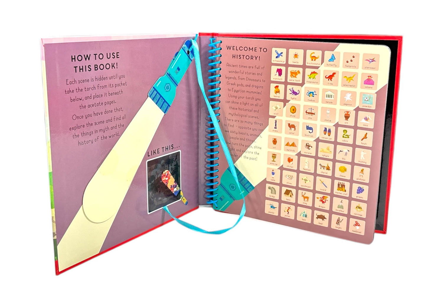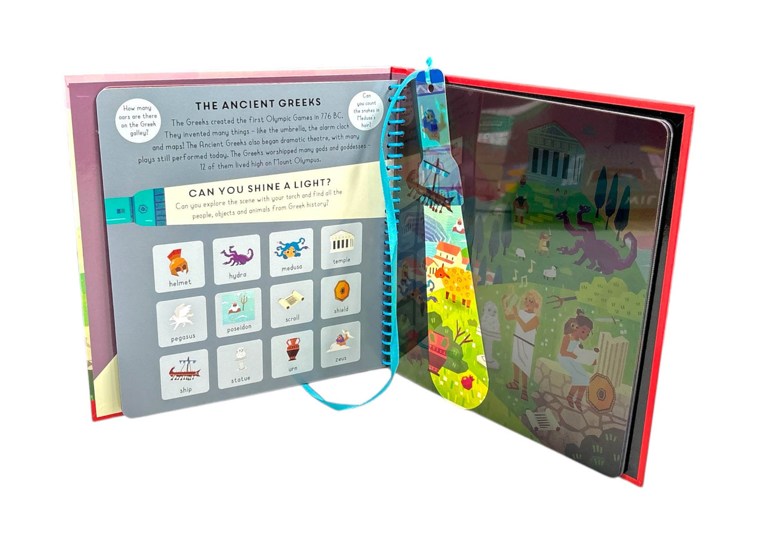 This title includes 5 acetate scenes with sixty 'can you find' items to search out with your magic torch. It features facts, questions and lots of things to learn about history and myths.