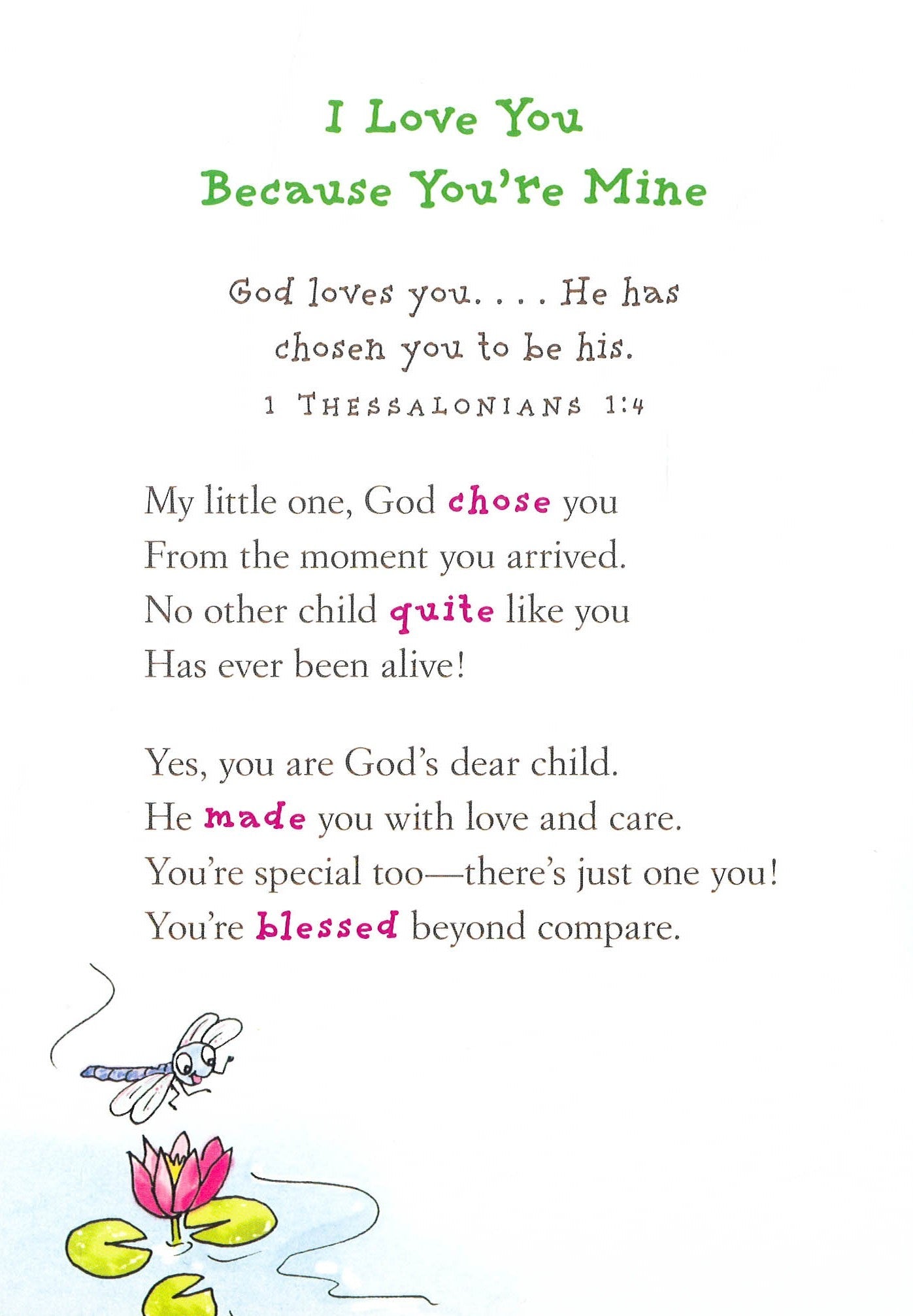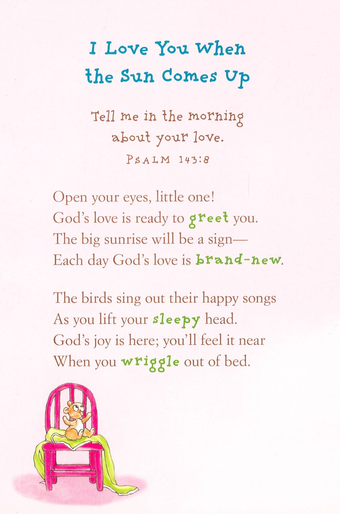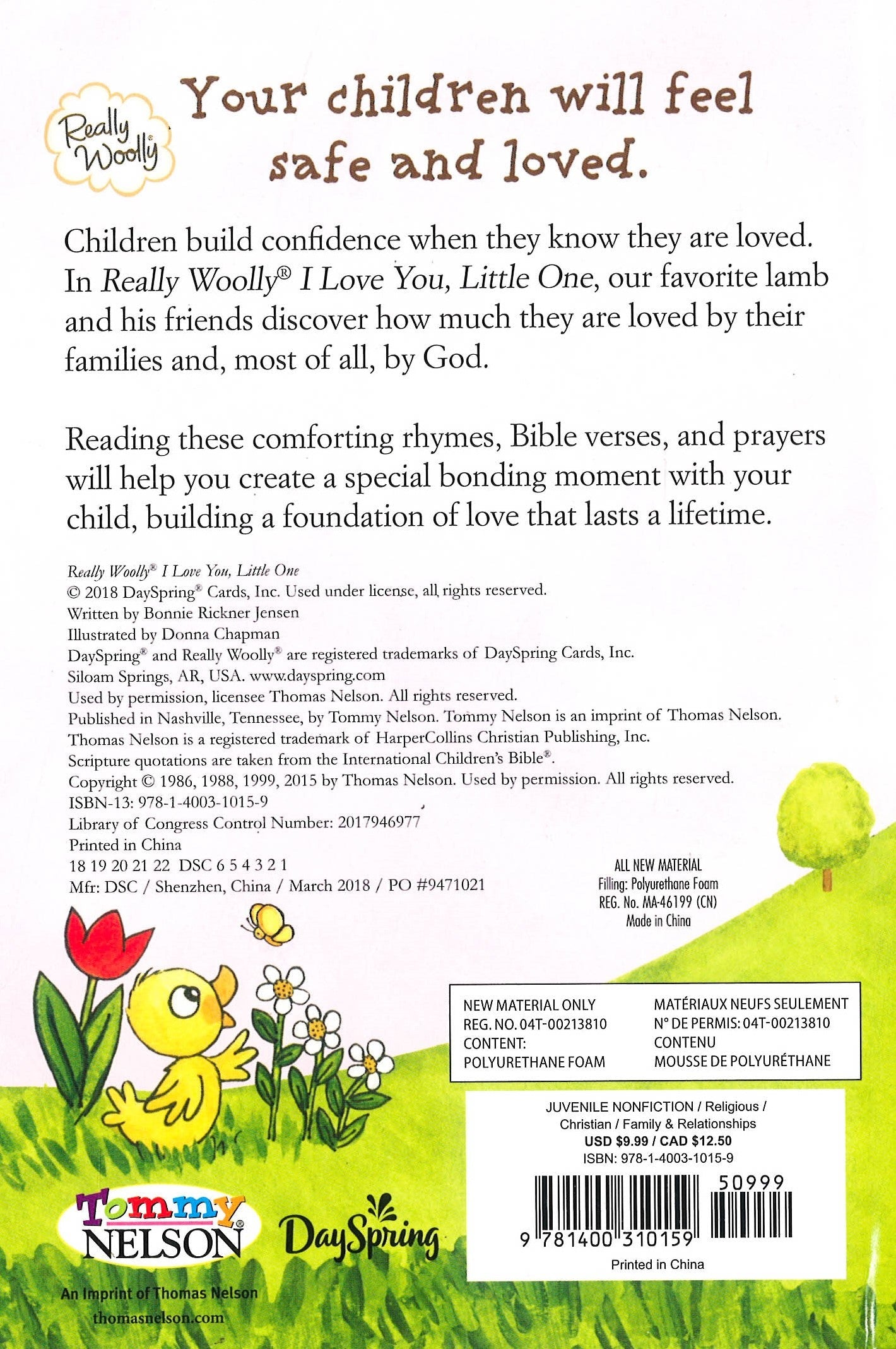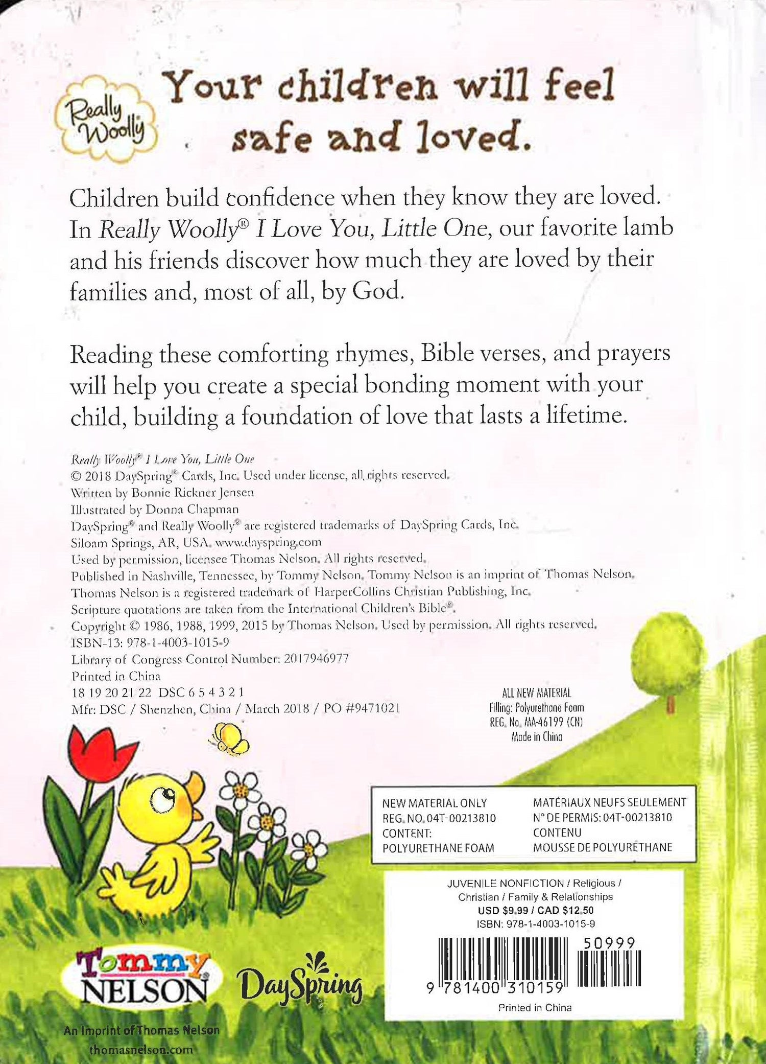 Your children will feel safe and loved.Children build confidence when they know they are loved. In Really Woolly (R) I Love You, Little One, our favorite lamb and his friends discover how much they are loved by their families and, most of all, by God.Reading these comforting rhymes, Bible verses, and prayers will help you create a special bonding moment with your child, building a foundation of love that lasts a lifetime.