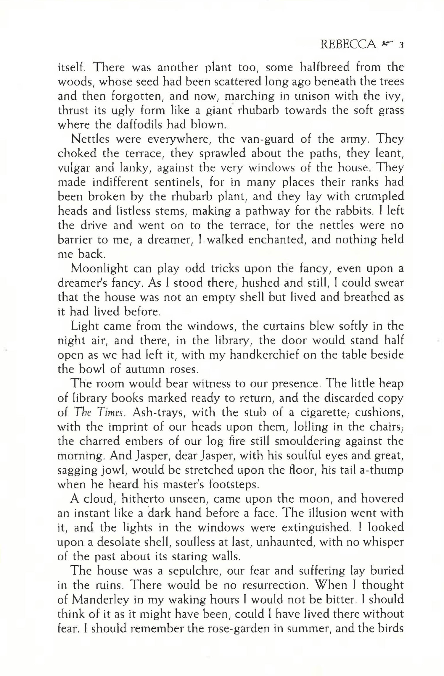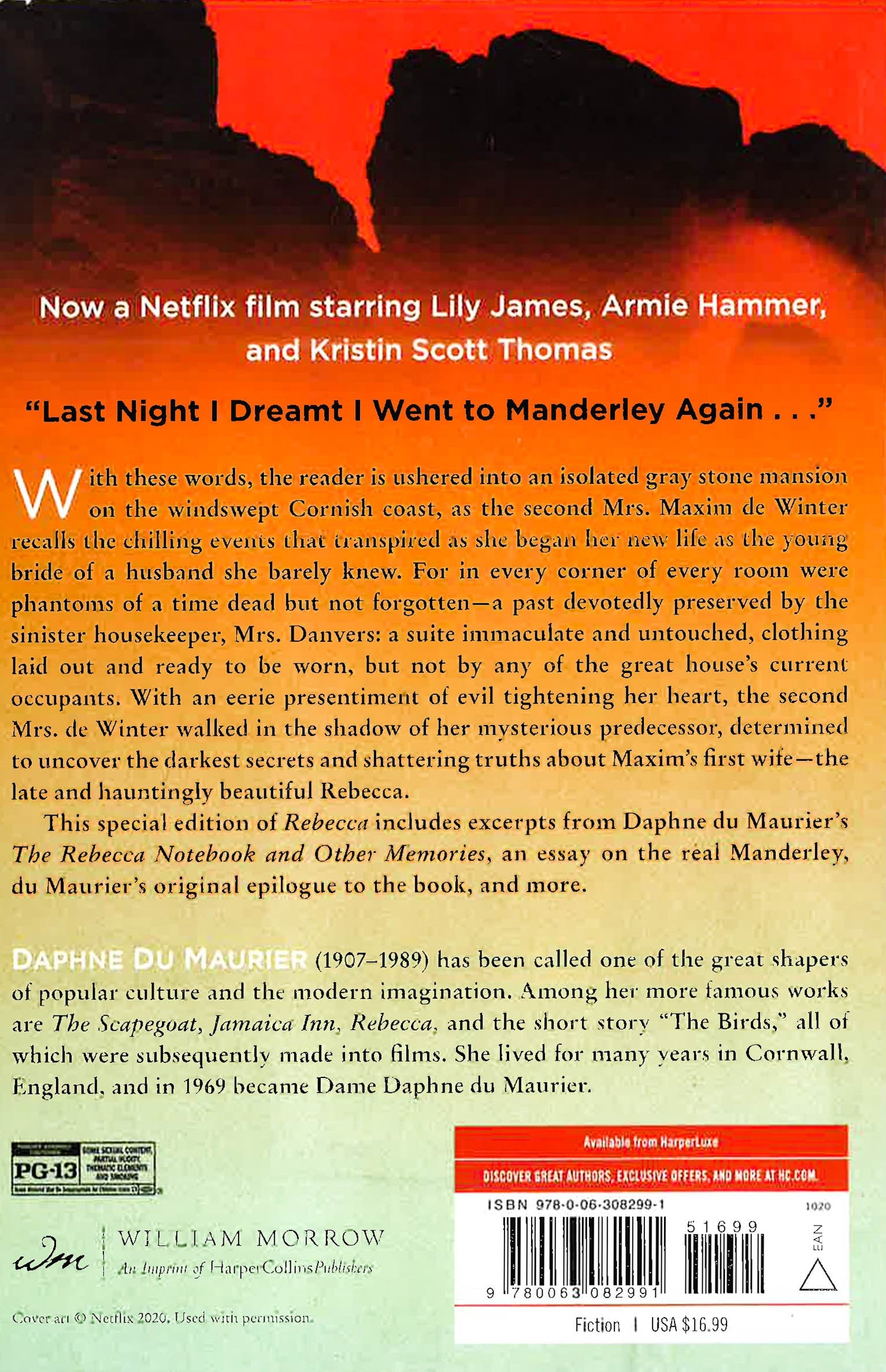 This special edition of Rebecca includes excerpts from Daphne du Maurier's The Rebecca Notebook and Other Memories, an essay on the real Manderley, du Maurier's original epilogue to the book, and more.