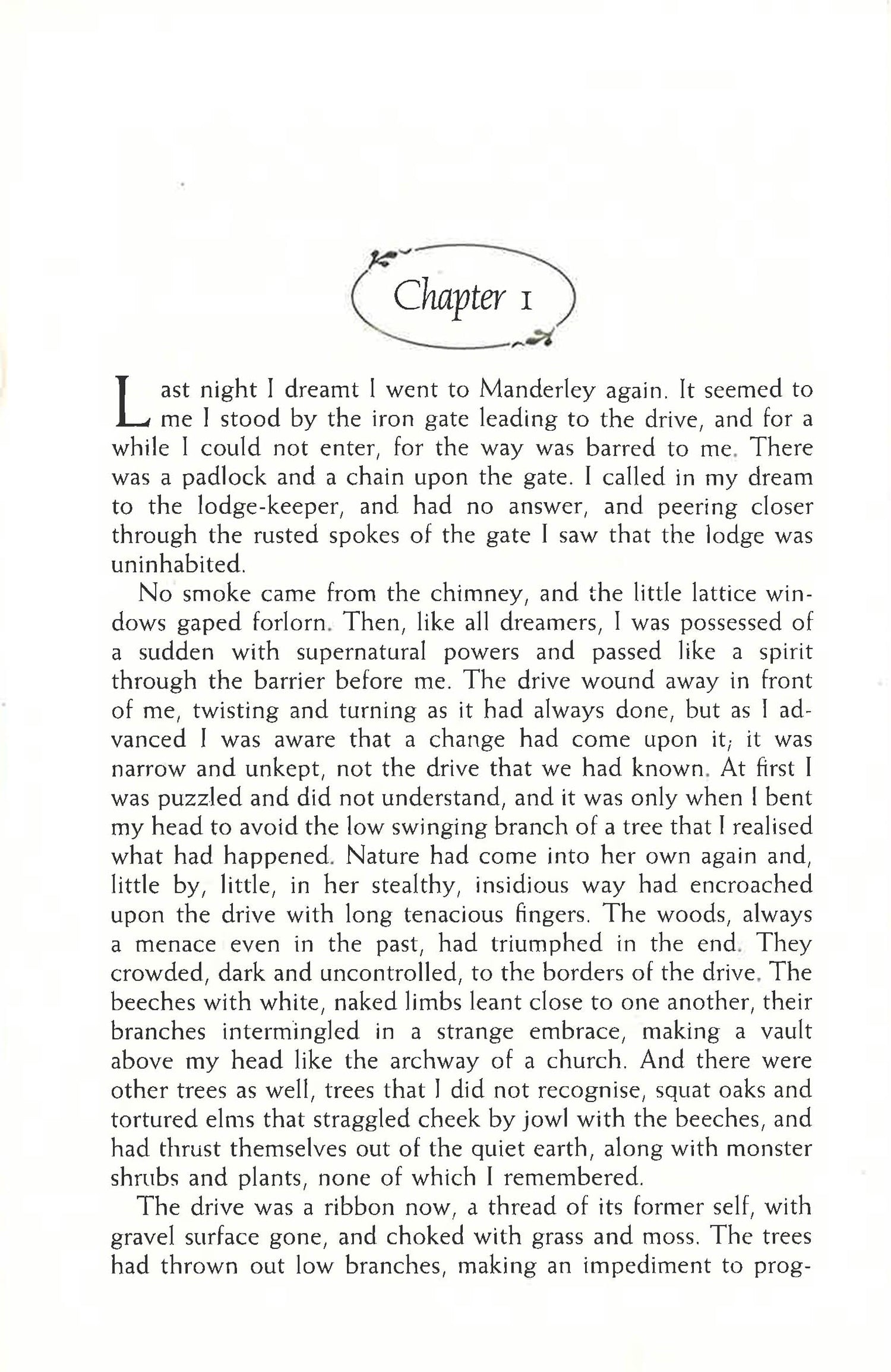 With these words, the reader is ushered into an isolated gray stone mansion on the windswept Cornish coast, as the second Mrs. Maxim de Winter recalls the chilling events that transpired as she began her new life as the young bride of a husband she barely knew. For in every corner of every room were phantoms of a time dead but not forgotten—a past devotedly preserved by the sinister housekeeper, Mrs. Danvers: a suite immaculate and untouched, clothing laid out and ready to be worn, but not by any of the great house's current occupants. With an eerie presentiment of evil tightening her heart, the second Mrs. de Winter walked in the shadow of her mysterious predecessor, determined to uncover the darkest secrets and shattering truths about Maxim's first wife—the late and hauntingly beautiful Rebecca.