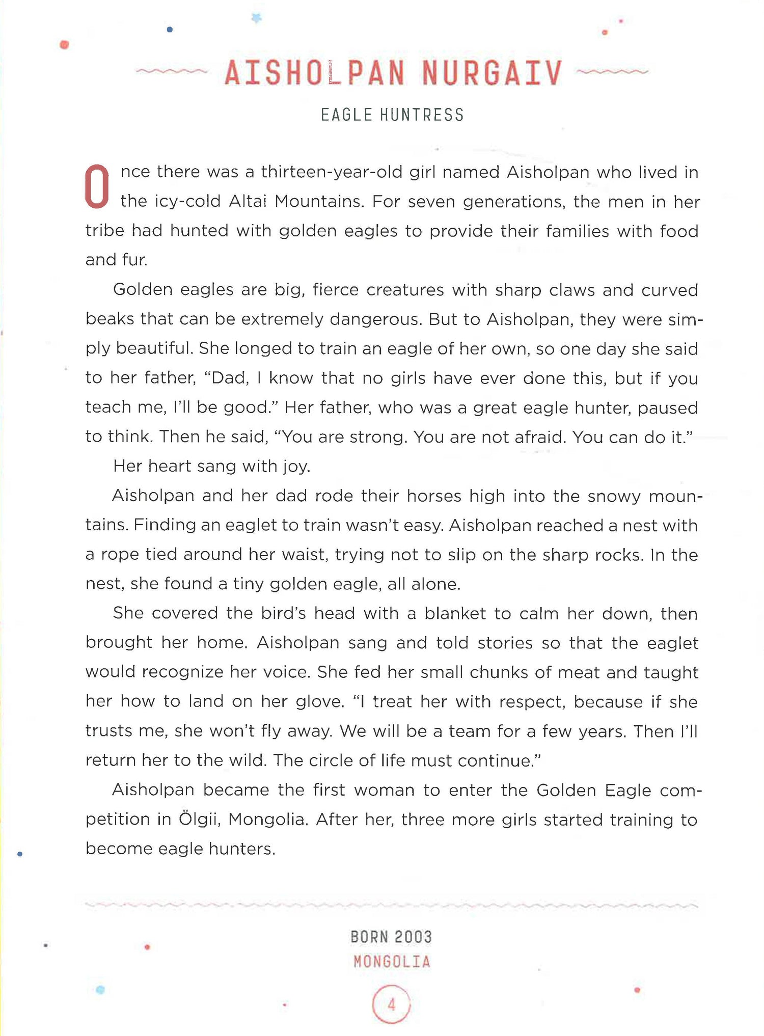 In this book, readers will embark on an empowering journey through 100 new bedtime stories, featuring the adventures of extraordinary women through the ages, from Nefertiti to Beyoncé. The unique narrative style of Good Night Stories for Rebel Girls transforms each biography into a fairytale, filling readers with wonder and a burning curiosity to know more about each hero.