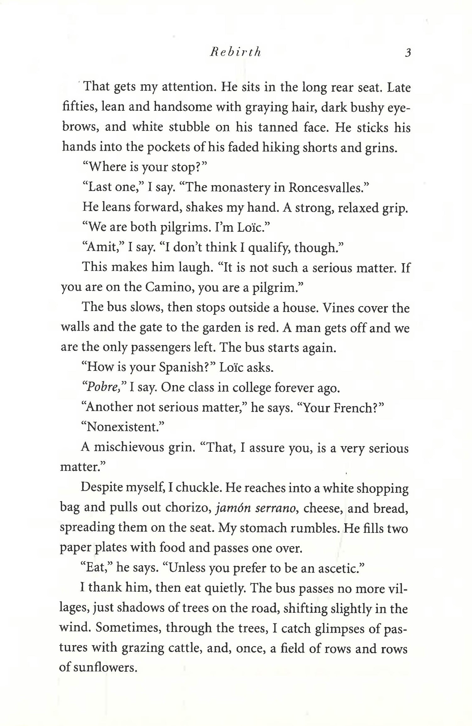 Once a reluctant pilgrim, Amit realizes he cannot stop until he completes the journey. As a traveler tells him, "Once you start walking the Camino, the Camino becomes a part of you." With each step Amit is challenged to confront his fear of following in the footsteps of his father, the loss of a woman he may love after all, and the reality of an uncertain future.