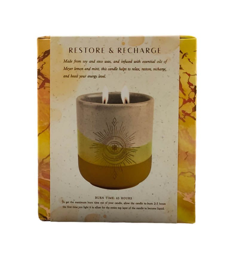 After a long day or when you feel your personal batteries are drained, use this beautiful candle to relax, restore, and recharge your body and mind with its warm light and energizing fragrance.