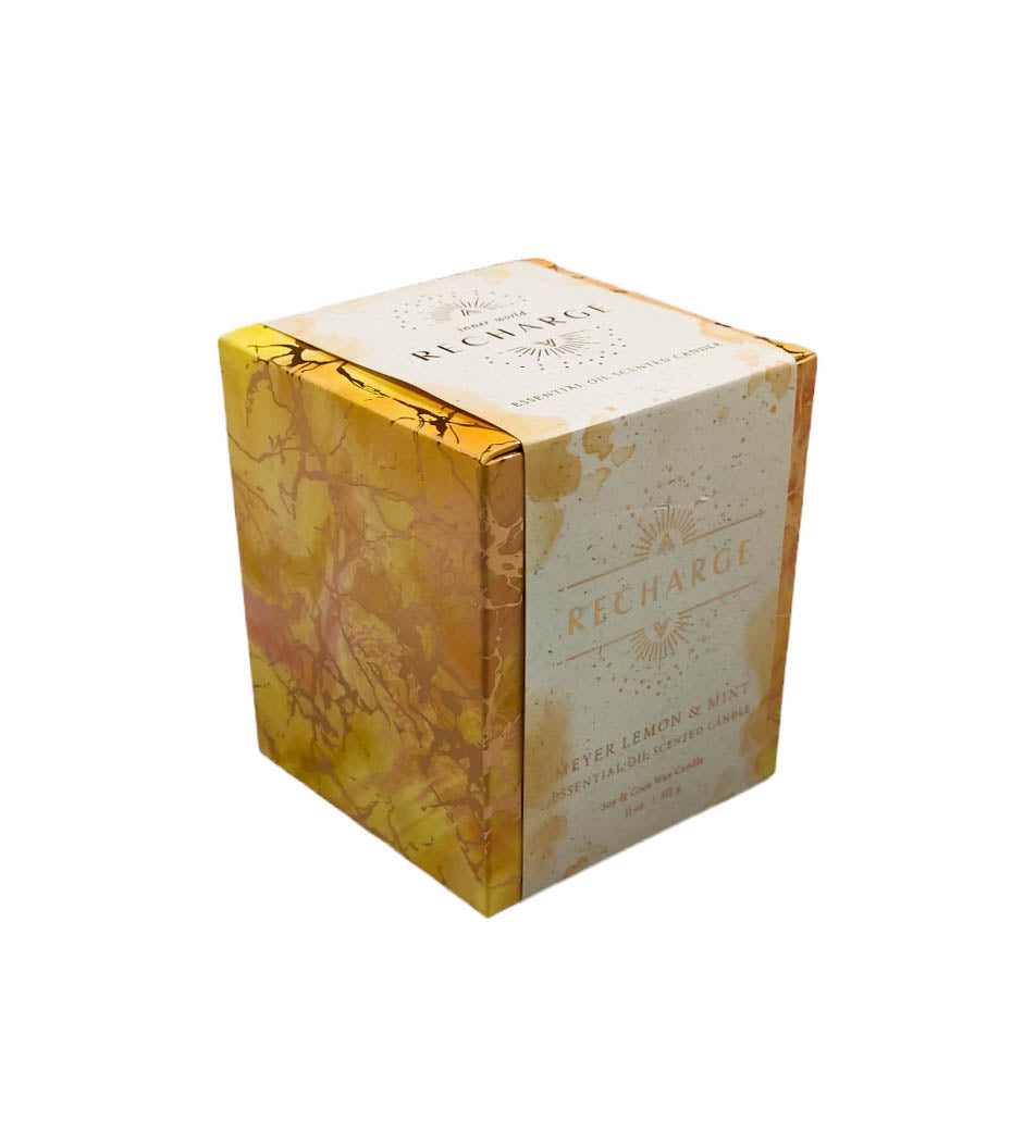 SCENTED WITH ESSENTIAL OILS OF MEYER LEMON AND MINT: The fresh and uplifting aroma of this candle helps to boost your energy level when you need it most.