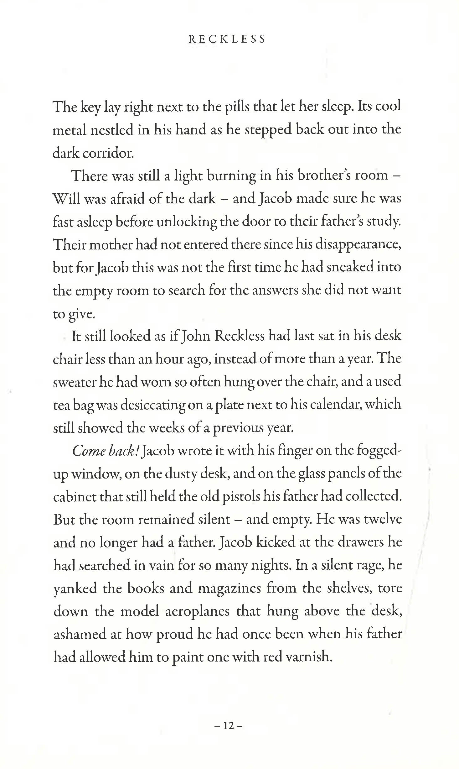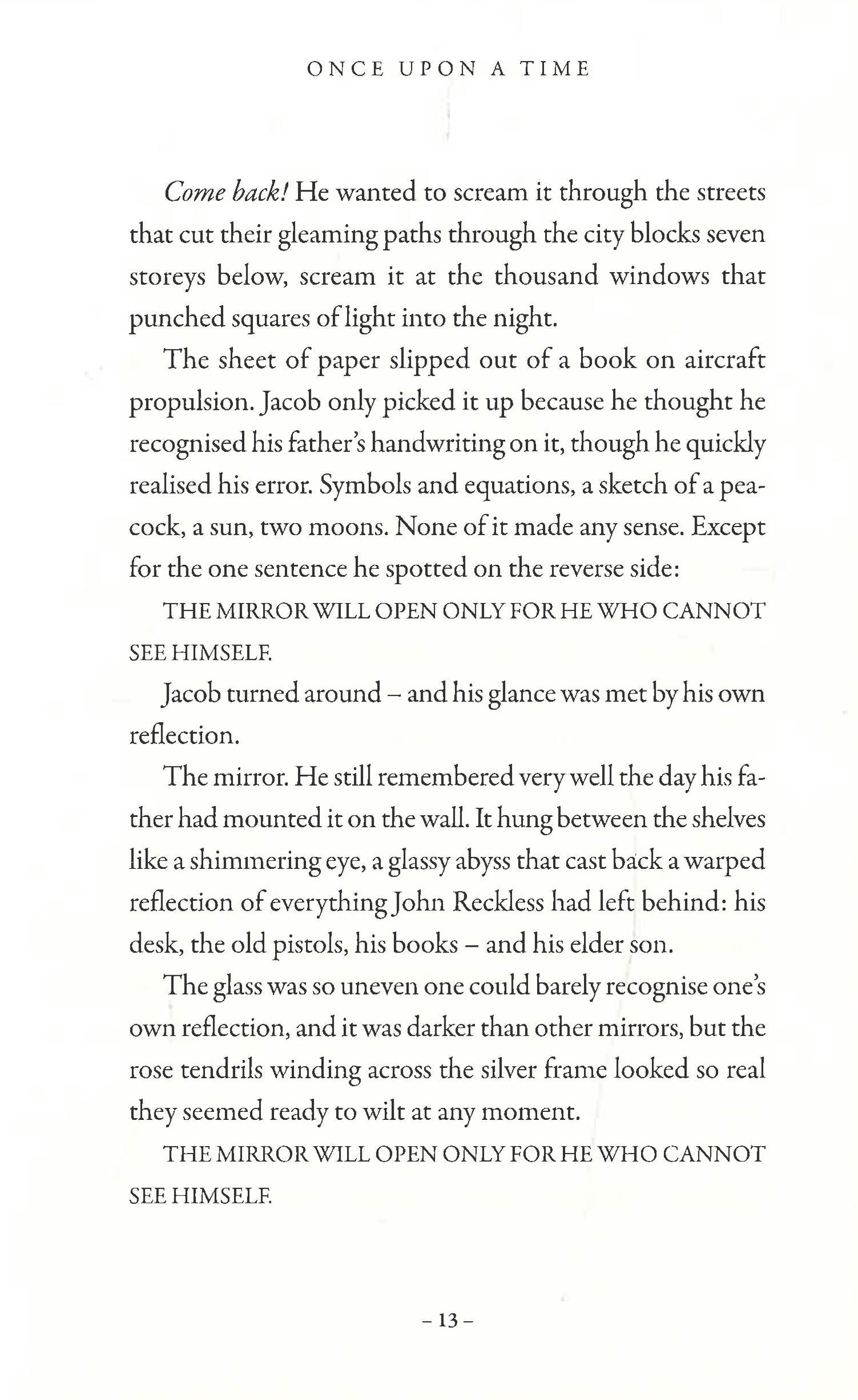 For the first time in his life, Jacob Reckless is afraid. For years he's stolen across to another world. A dark enchanted place he's loved for its treasure, secrets and dangers. Until now. Will, his younger brother, has followed him with terrible consequences: the boy will turn to beast; the girl he loves will break her heart and chaos will rule forever, unless Jacob can spin a fairytale to save them..