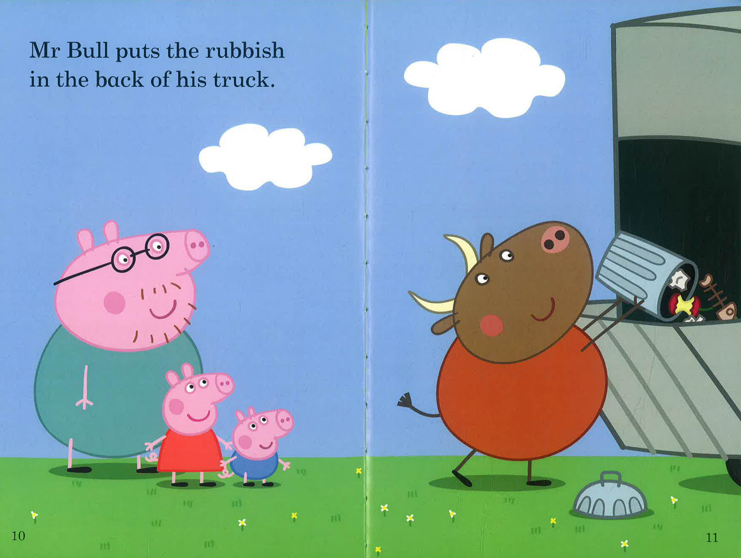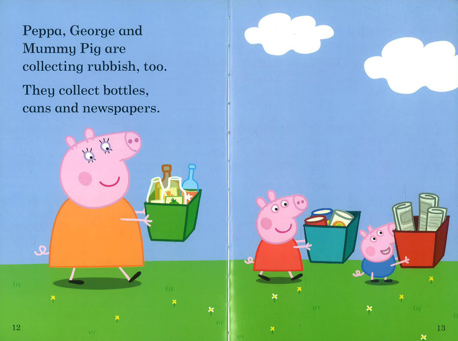 Peppa Pig and her family are having fun sorting and recycling their rubbish. Miss Rabbit is having fun recycling, too, until she tries to recycle something she shouldn't!