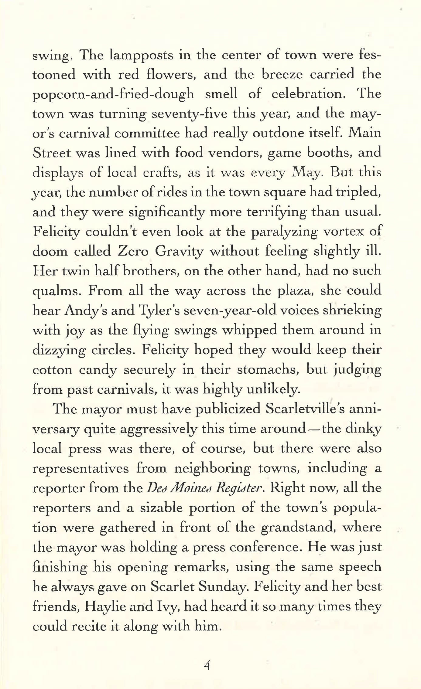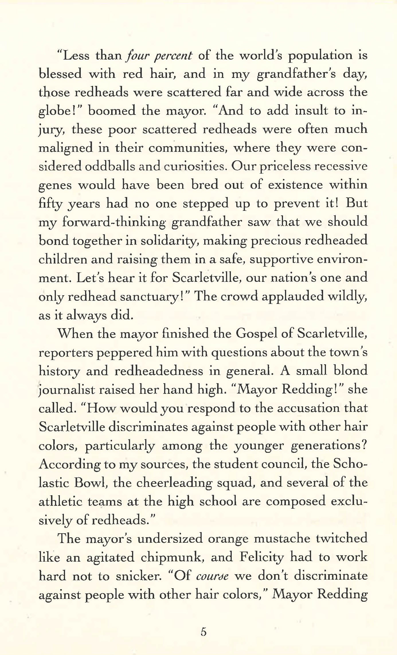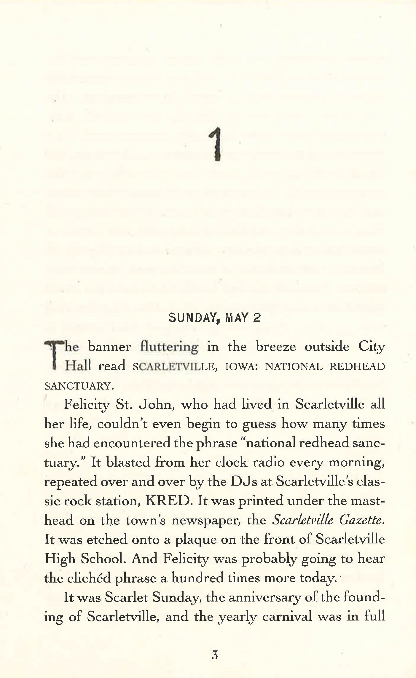 Felicity lives in Scarletville, the world's only redhead sanctuary, where red hair is celebrated, protected - and the key to success.