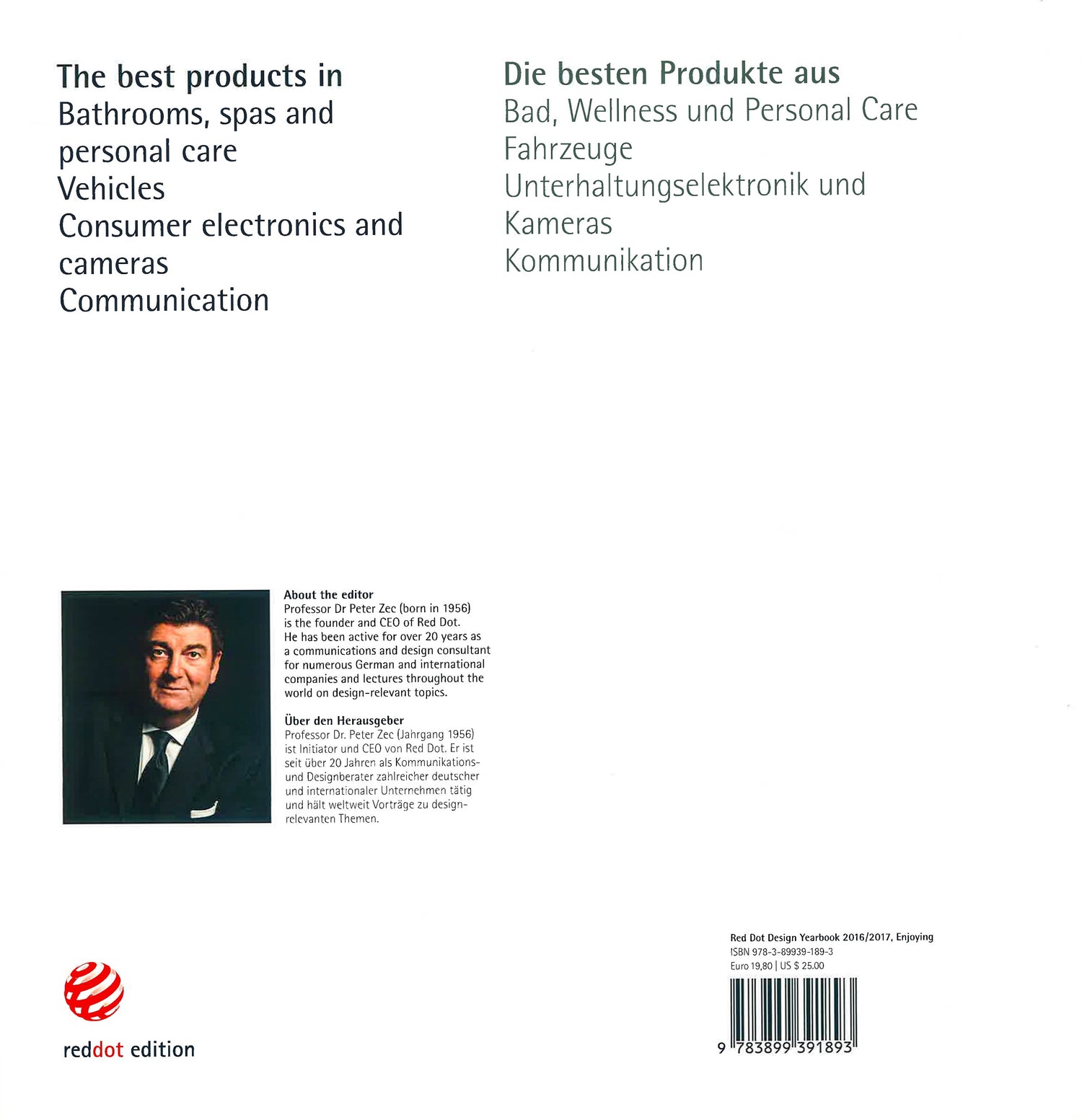 Enjoying" is the new fourth volume of the Red Dot Design Yearbook 2016/2017 and visualises products from areas such as bathrooms and spas, vehicles, consumer electronics and camera, as well as communication. Additionally, the design team of the year, as well as designer and jury portraits will be shown.
