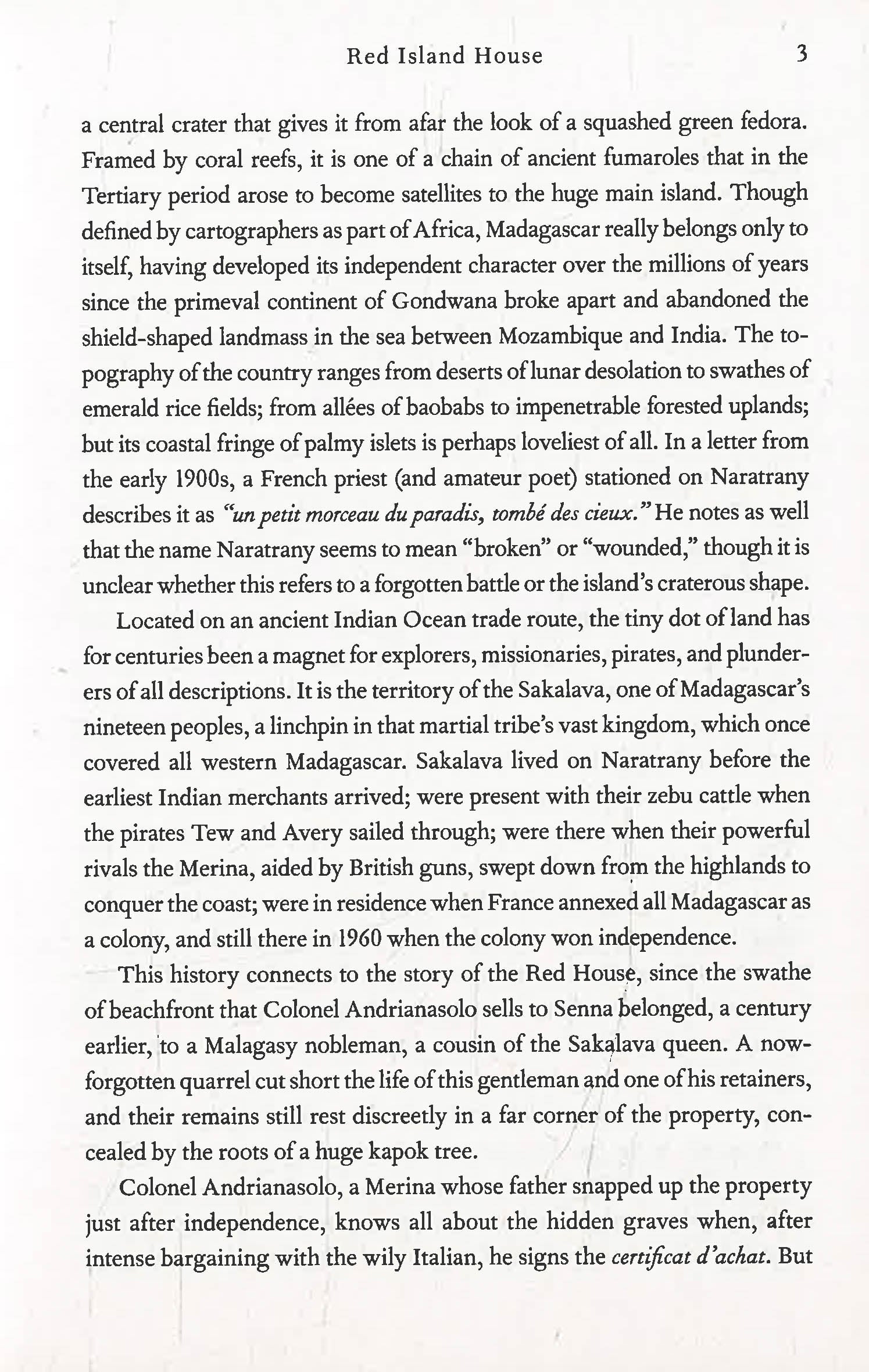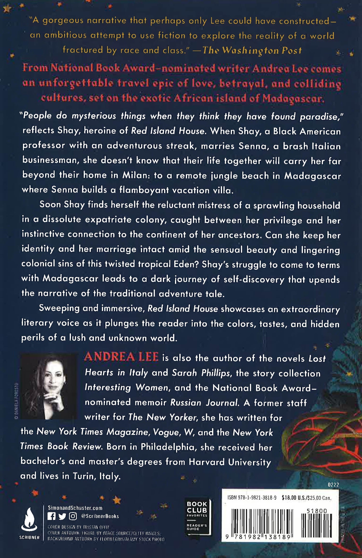 “People do mysterious things when they think they have found paradise,” reflects Shay, the heroine of Red Island House. When Shay, an intrepid Black American professor, marries Senna, a brash Italian businessman, she doesn’t imagine that her life’s greatest adventure will carry her far beyond their home in Milan: to an idyllic stretch of beach in Madagascar where Senna builds a flamboyant vacation villa. Before she knows it, she becomes the reluctant mistress of a sprawling household, caught between her privileged American upbringing and her connection to the continent of her ancestors. So begins Shay’s journey into the heart of a remote African country. Can she keep her identity and her marriage intact amid the wild beauty and the lingering colonial sins of this mysterious world that both captivates and destroys foreigners?
