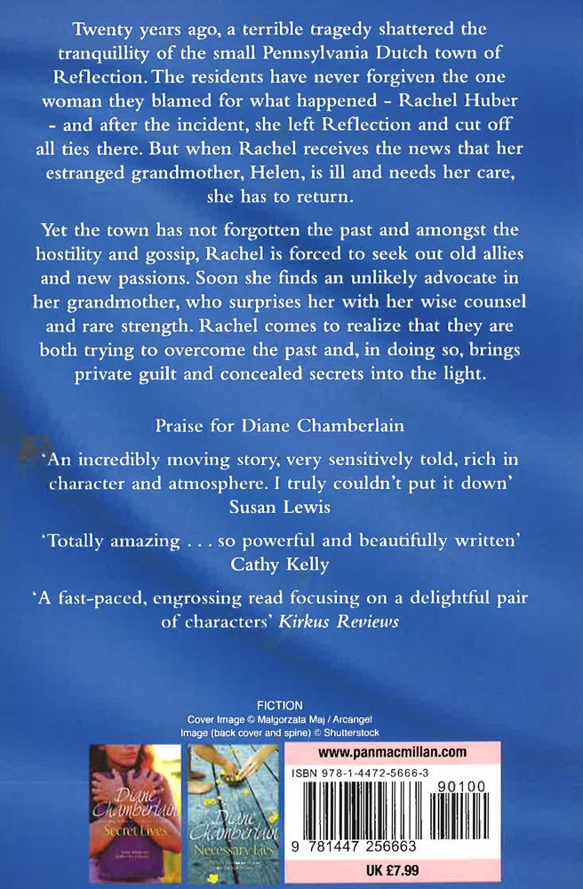 Guilt and small town gossip come to a head in Diane Chamberlain's incredibly moving Reflection. You can never outrun the past...Twenty years ago, a terrible tragedy shattered the tranquillity of the small Pennsylvania Dutch town of Reflection. The residents of the village have never forgiven the one woman they blamed for what happened - Rachel Huber. After the incident, Rachel left the town and cut off all ties there. But when Rachel receives the news that her estranged grandmother, Helen, is ill and needs her care, she returns to Reflection. On arrival she discovers that the town has not forgotten the past and amongst the hostility and gossip, Rachel is forced to seek out old allies and new passions. Soon she finds an unlikely advocate in her grandmother, who surprises her with her wise counsel and rare strength. Rachel comes to realize that they are both trying to overcome the past, and in doing so brings private guilt and concealed secrets into the light.
