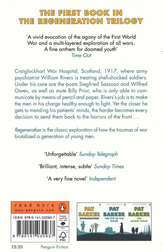 Craiglockhart War Hospital, Scotland, 1917, and army psychiatrist William Rivers is treating shell-shocked soldiers. Under his care are the poets Siegfried Sassoon and Wilfred Owen, as well as mute Billy Prior, who is only able to communicate by means of pencil and paper. Rivers's job is to make the men in his charge healthy enough to fight. Yet the closer he gets to mending his patients' minds the harder becomes every decision to send them back to the horrors of the front. Pat Barker's Regeneration is the classic exploration of how the traumas of war brutalised a generation of young men.