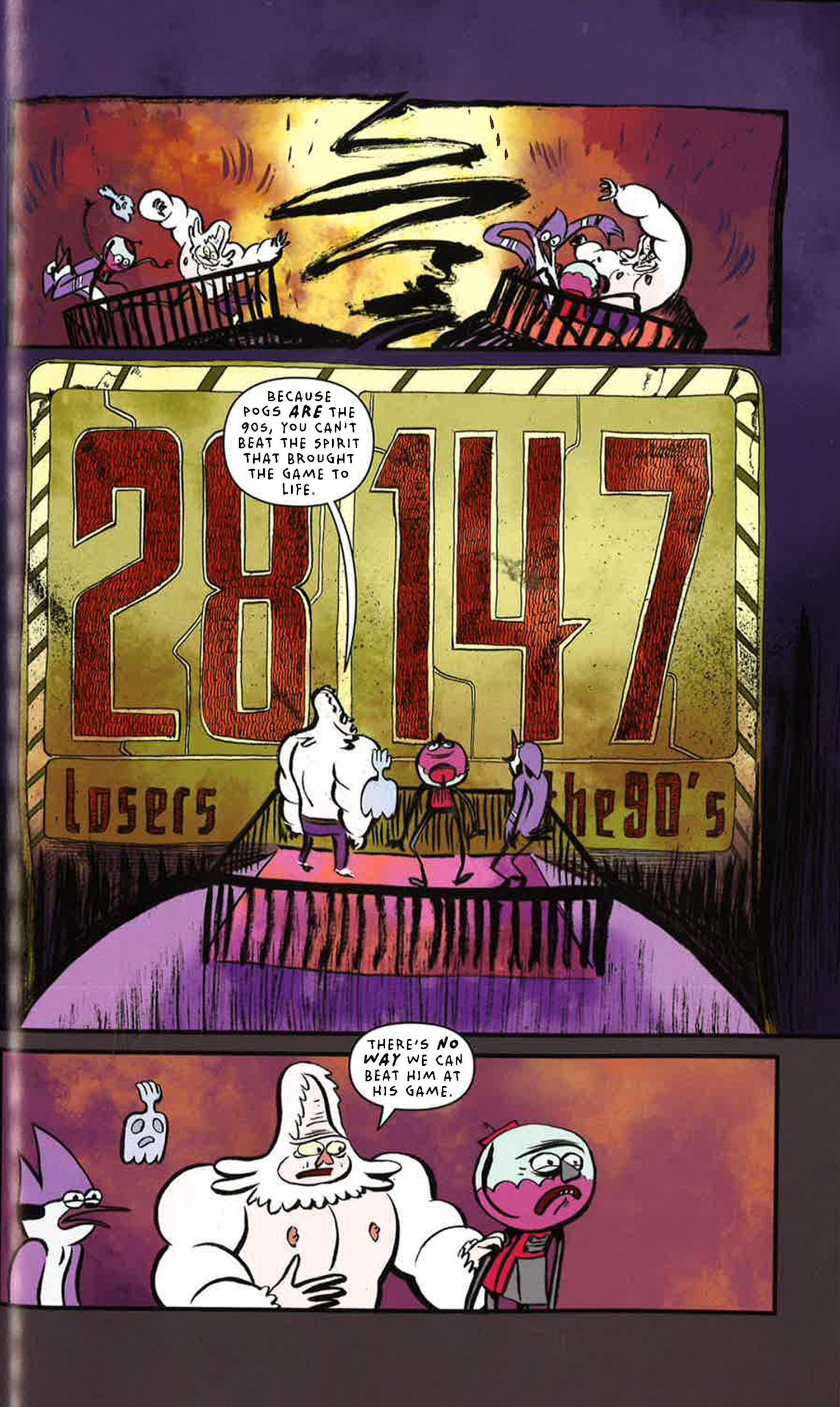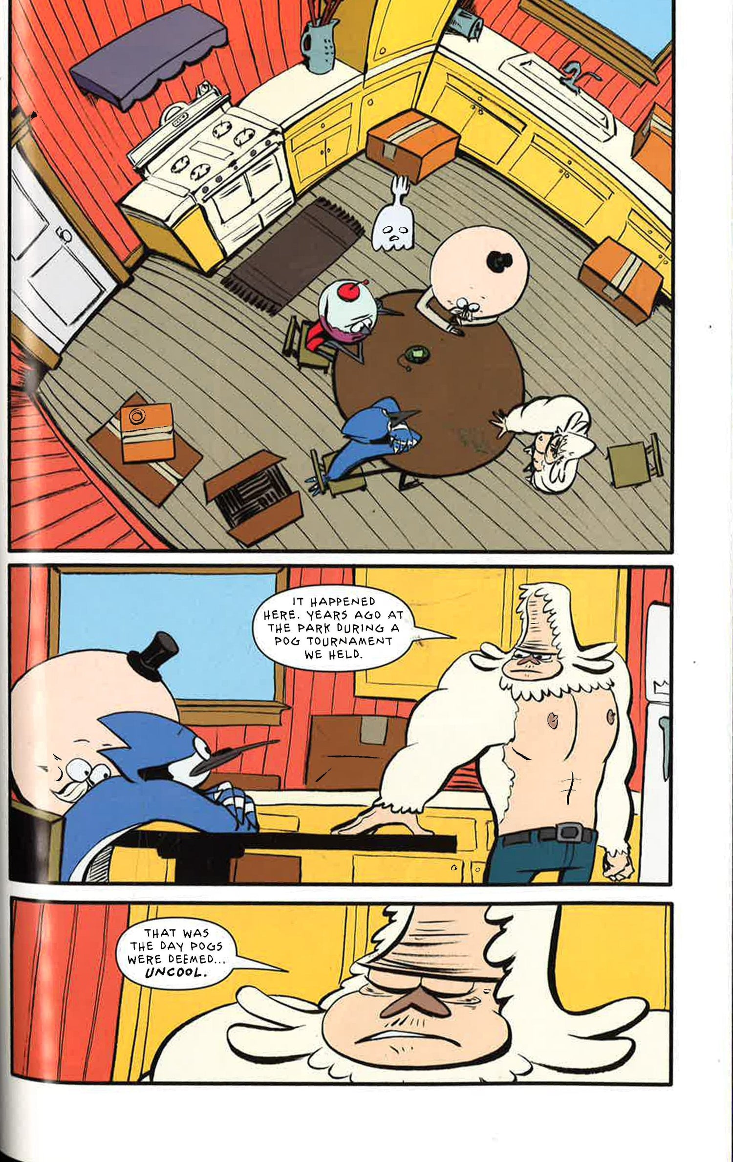 A third collection of the best-selling comic based on the Cartoon Network series! It's time for a good dose of cleaning as Benson tries to organize the Park's yearly garage sale...only Rigby is having some trouble letting go. Banished to the garage Rigby comes across a mysterious pogs container that is about to give everyone at the Park a strong dose of the 90's...and a pog match for their own souls. REGULAR SHOW volume 3 collects issues #9-#12 of the hit series based on the Cartoon Network animated comedy.