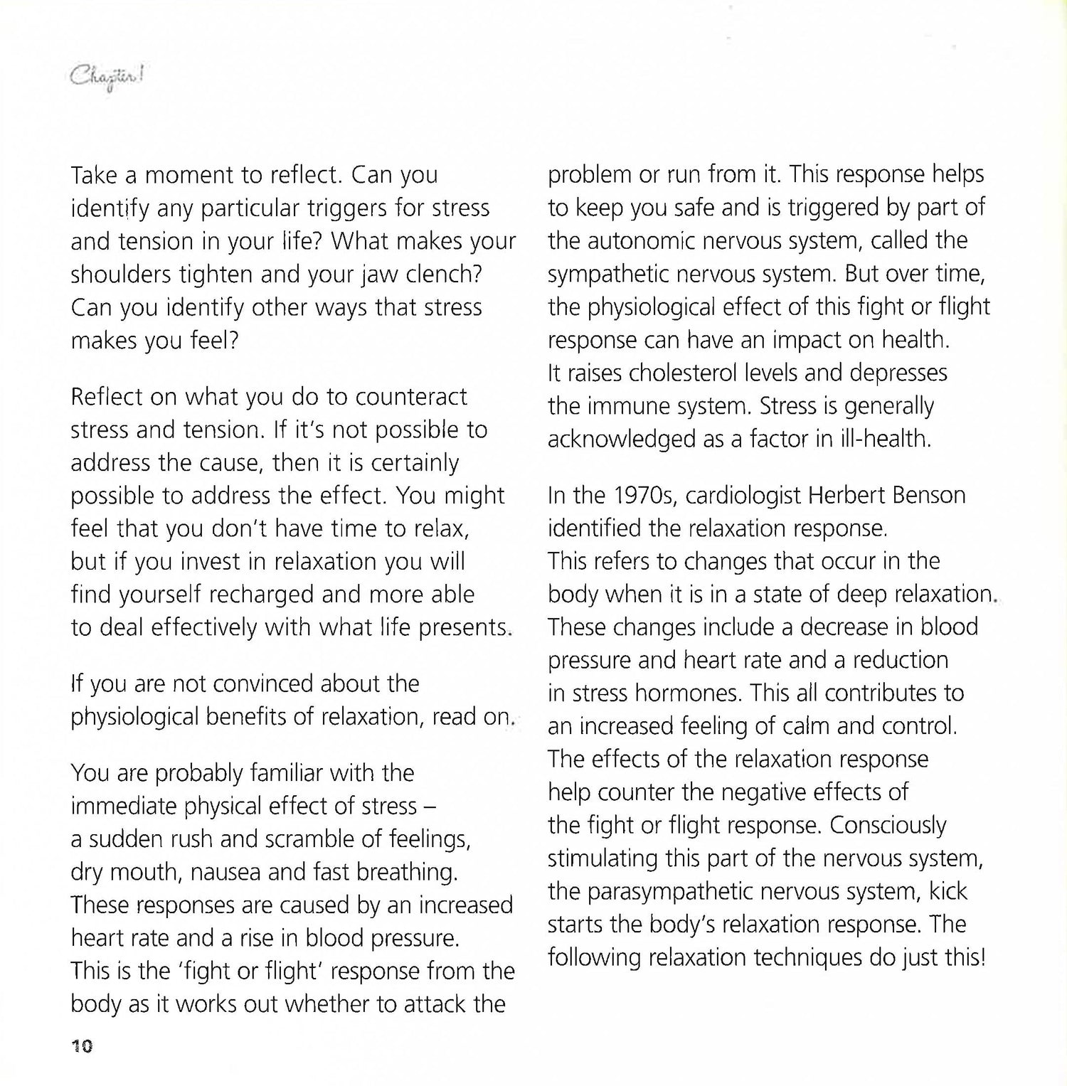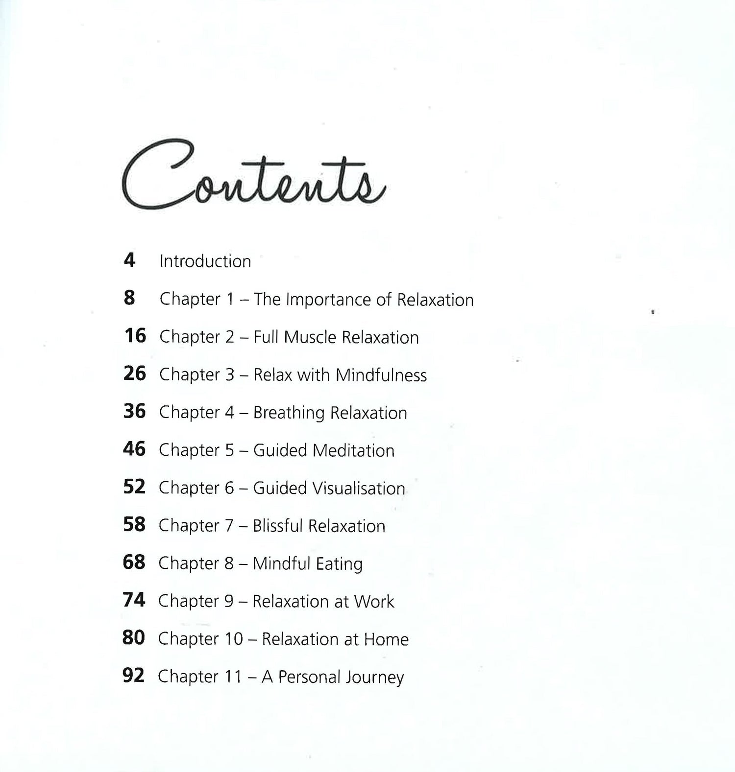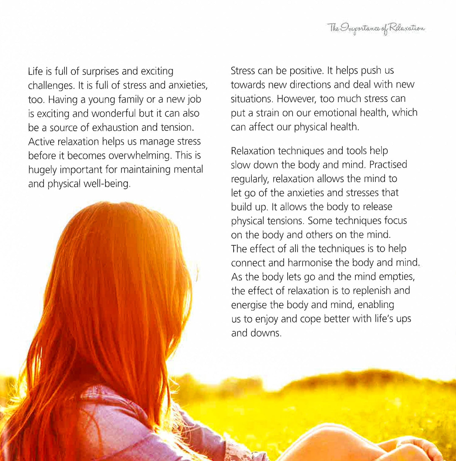 Relaxation contains advice and exercises designed to renew energy and reduce stress levels.