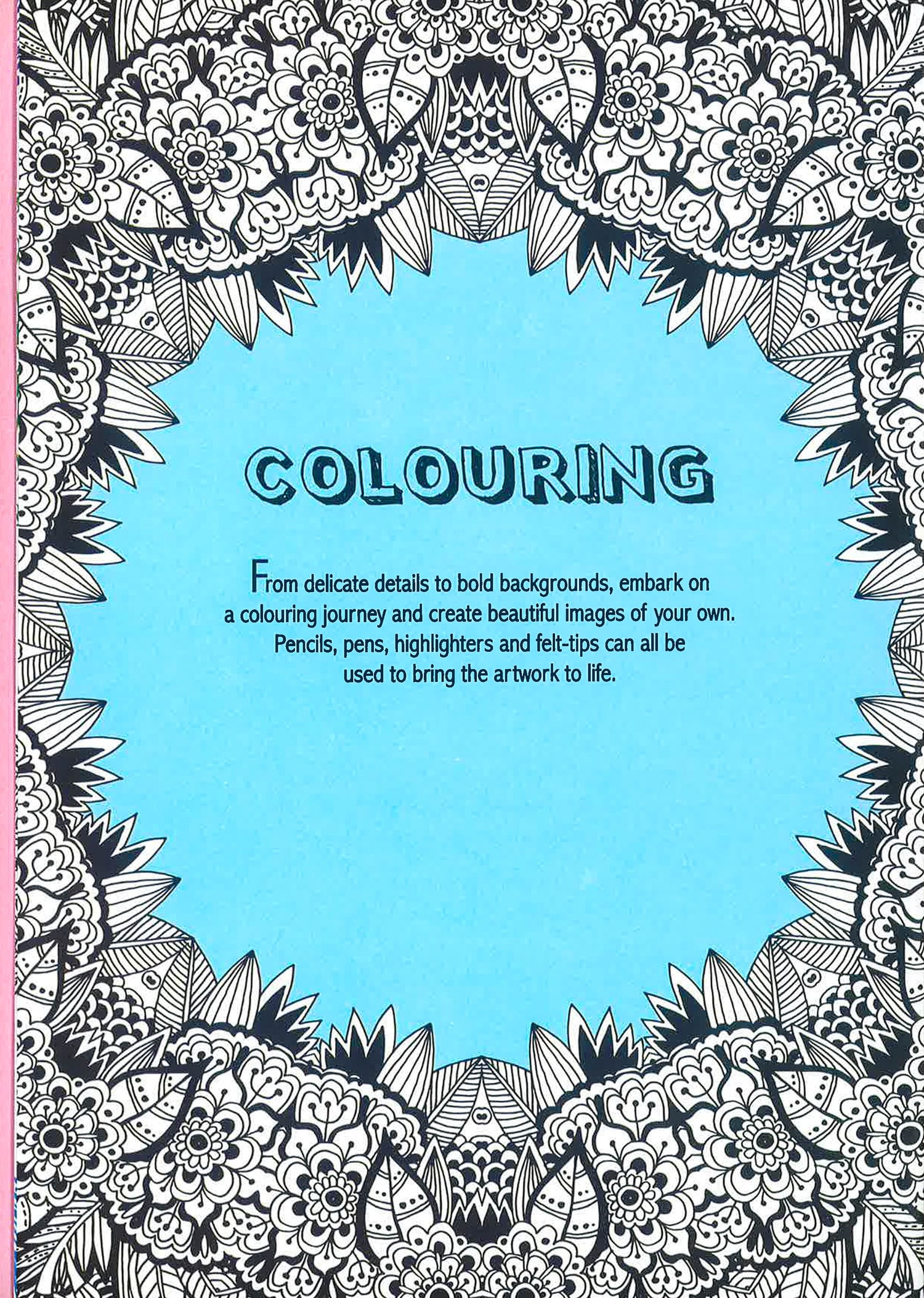 This sophisticated colouring, doodling and drawing book features beautifully intricate illustrations to colour that are designed to inspire a state of calm. There are no rules or complicated step-by-step instructions in these pages and no need for expensive art and craft supplies.The fifth title in the hugely successful Art Therapy series, this book would make a gorgeous gift for anyone who wants to de-stress with colouring.