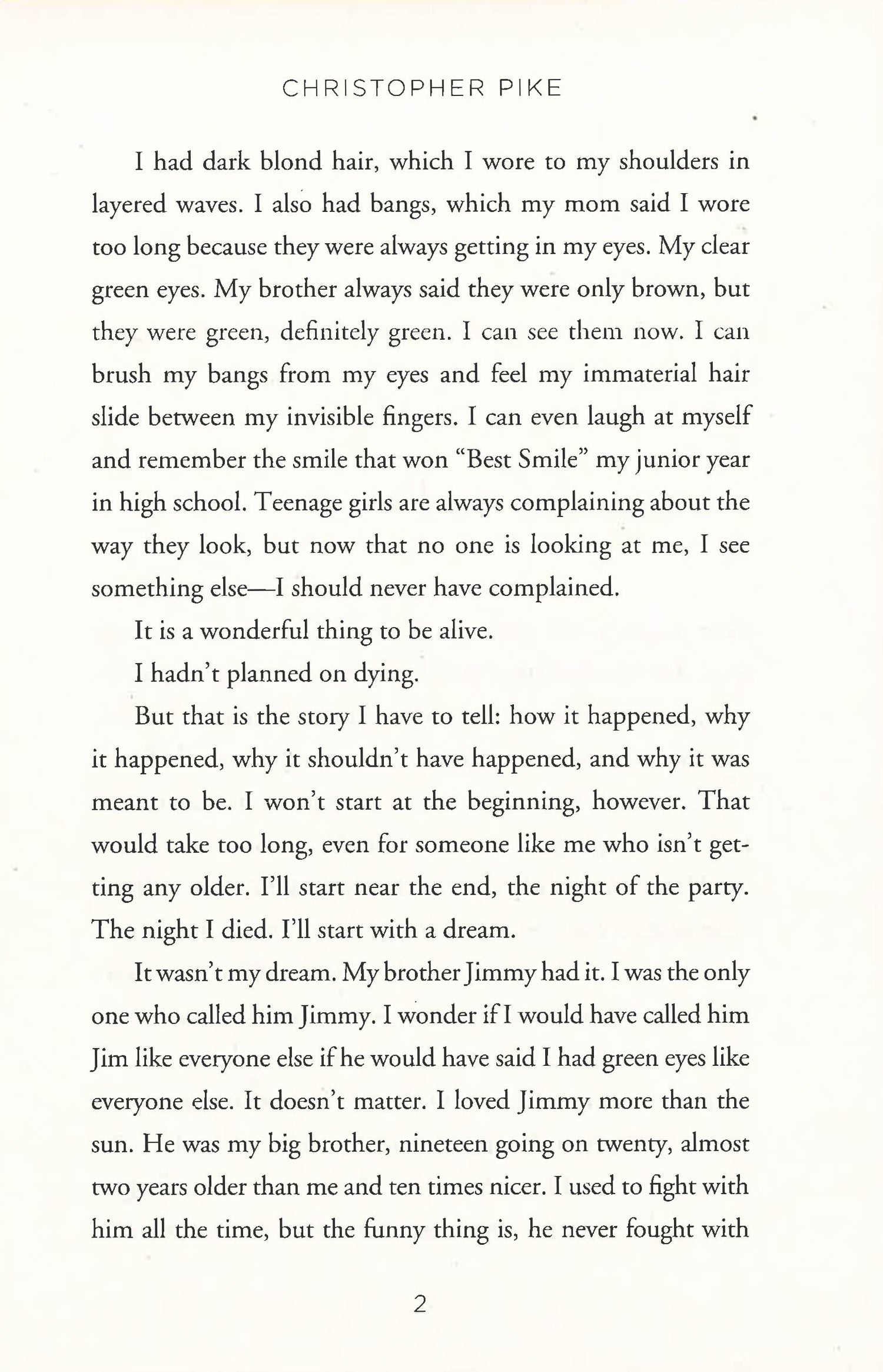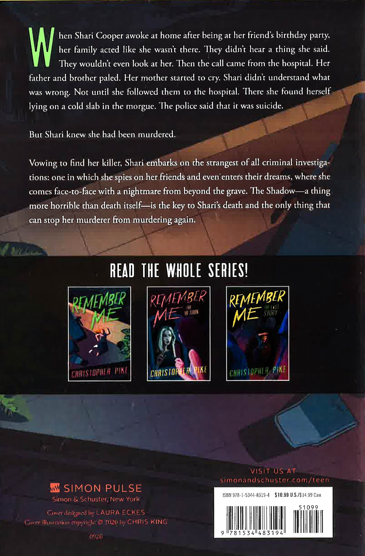 In this harrowing thriller from bestselling author Christopher Pike, a teen girl must solve the mystery of her own murder before the killer strikes again. After a night spent out with friends, Shari Cooper wakes up in her bed not sure how she got home. And things only get stranger when her family acts like she's not even there. Nothing Shari says gets a response and nothing she does can get someone to even glance at her. Then the hospital calls. Shari's mom starts to cry. The blood drains from her dad's face. And still no one will tell her what's wrong. But when they arrive at the hospital, Shari follows her family to the morgue and sees herself lying there on a cold slab. She's dead. The police rule her death a suicide, but Shari knows she was murdered--and if the cops won't find her killer, she will. To investigate, Shari spies on her friends and even enters their dreams. There, she comes face to face with a nightmare from beyond the grave...the Shadow. The Shadow is even more horrible than death itself, but Shari must face it to uncover the truth about her death and prevent her murderer from killing again.