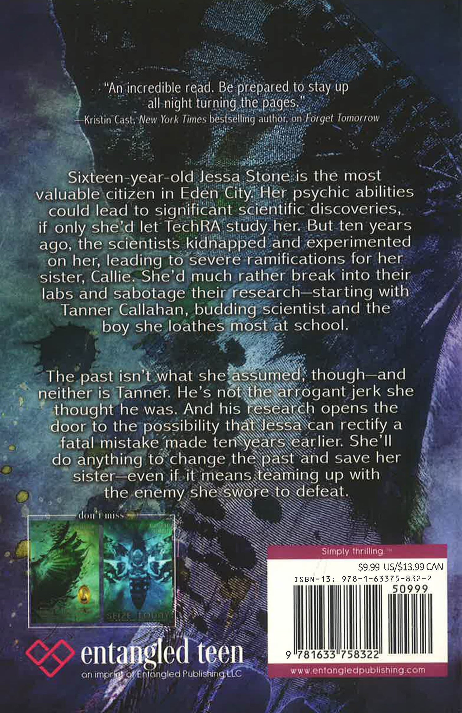 Seventeen-year-old Jessa Stone is the most valuable citizen in Eden City. Her psychic abilities could lead to significant scientific discoveries -- if only she'd let TechRA study her. But after they kidnapped and experimented on her as a child, cooperating with the scientists is the last thing Jessa would do. But when she discovers the past isn't what she assumed, Jessa must join forces with budding scientist Tanner Callahan to rectify a fatal mistake made ten years ago. She'll do anything to change her past -- even if it means aligning herself with the enemy she swore to defeat.