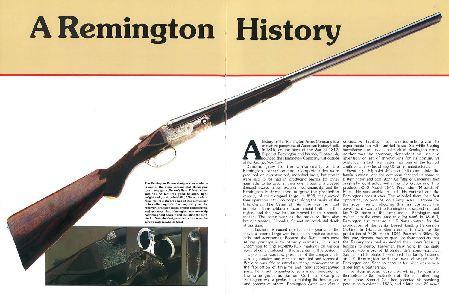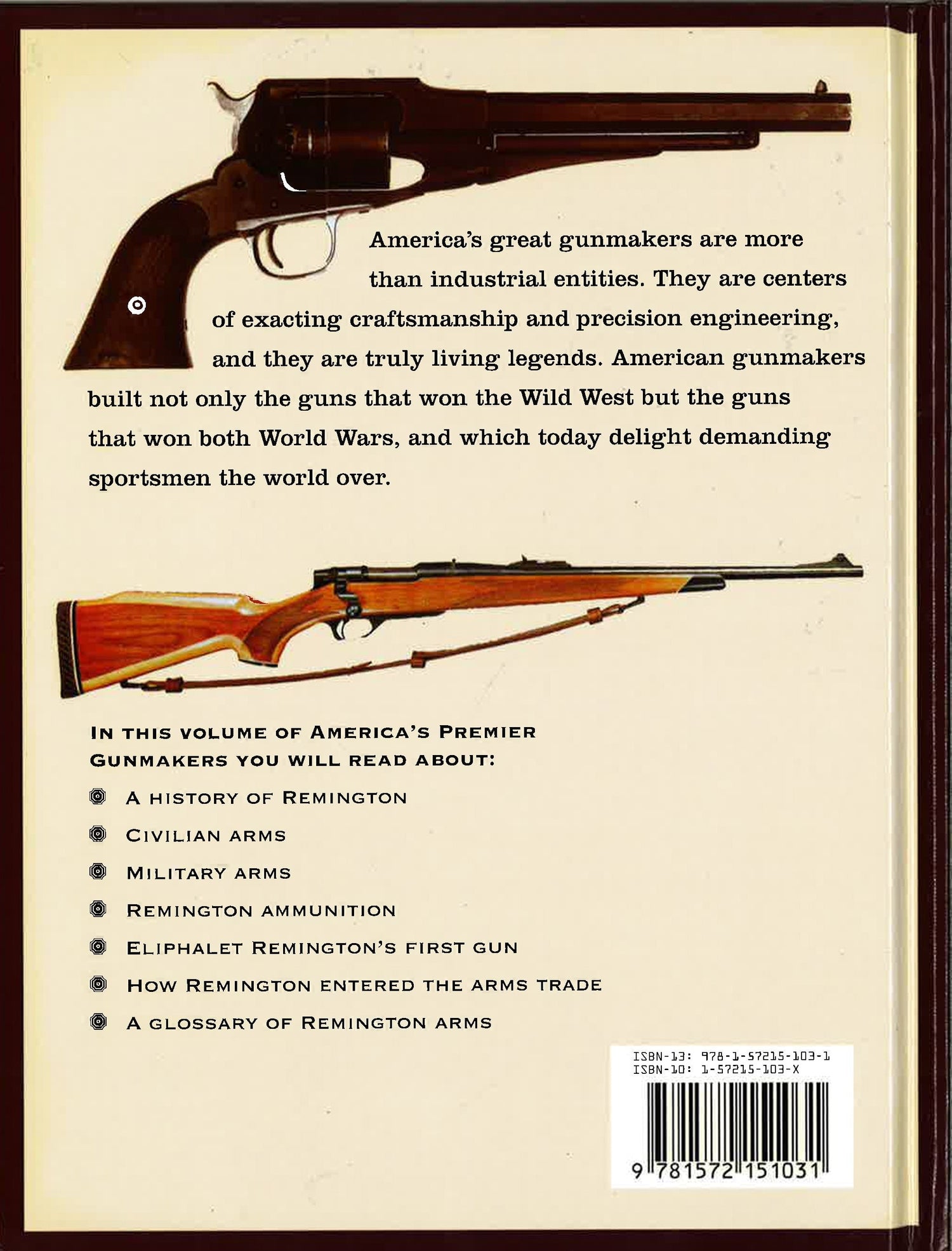America's great gunmakers are more than industrial entities. They are centers of exacting craftsmanship and precision engineering, and they are truly living legends. American gunmakers built not only the guns that won the Wild West but the guns that won both World Wars, and which today delight demanding sportsmen the world over. In this volume of America's Premier Gunmakers you will read about: A History Of Remington, Civilian Arms, Military Arms, Remington Ammunition, Eliphalet Remington's First Gun, How Remington Entered The Arms Trade and A Glossary of Remington Arms. In 1816, young Eliphalet Remington decided that, despite his tender age of twenty-four, he could build a better rifle than he could buy. He was right. Within a few years, his fine rifle was the talk of the young United States. Hunters, settlers, soldiers-all beat a path to his door. By 1864, the Remington Company held the patent for the world's first successful breech-loading mechanism. And it didn't stop there. The pearl-handled Double Derringer favored by gamblers, the Remington .22 rifle carried by Annie "Little Miss Sure Shot" Oakley, the percussion rifles that helped settle America, Civil War muzzleloaders and the 1905 Model II, the first successful auto loading gun - all of these are part of not only the history of Remington, but the history of the nation itself. With the aid of beautiful color photographs, this volume tells the fascinating story of Remington. It is a treasure to delight any gun enthusiast, whether sportsman or historian.