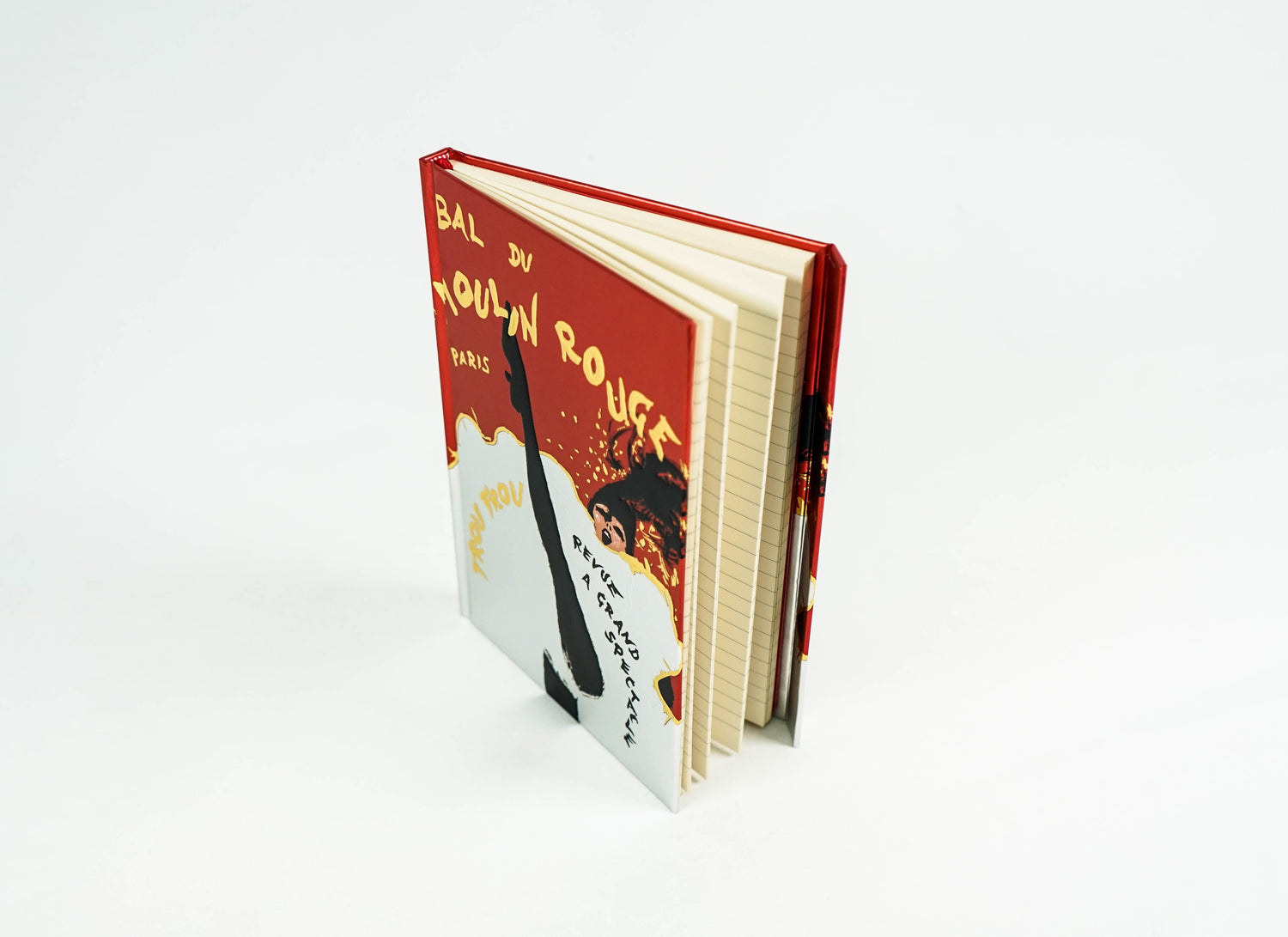 Part of a series of exciting and luxurious Flame Tree Notebooks. Combining high-quality production with magnificent fine art, the covers are printed on foil in five colours, embossed then foil stamped. And they're powerfully practical: a pocket at the back for receipts and scraps, two bookmarks and a solid magnetic side flap. These are perfect for personal use and make a dazzling gift. This example features Rene Gruau's moving work 'Bal du Moulin Rouge'.