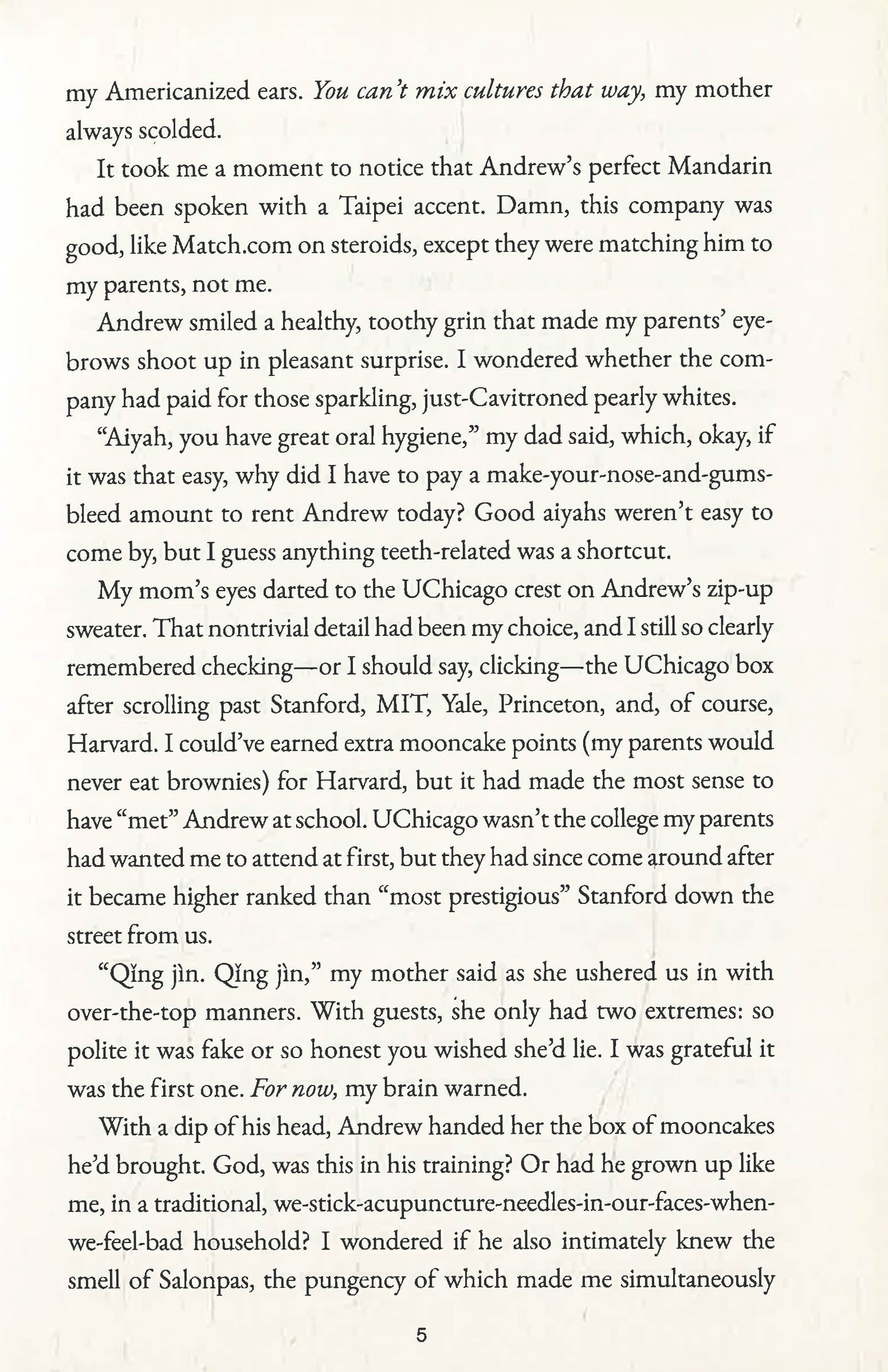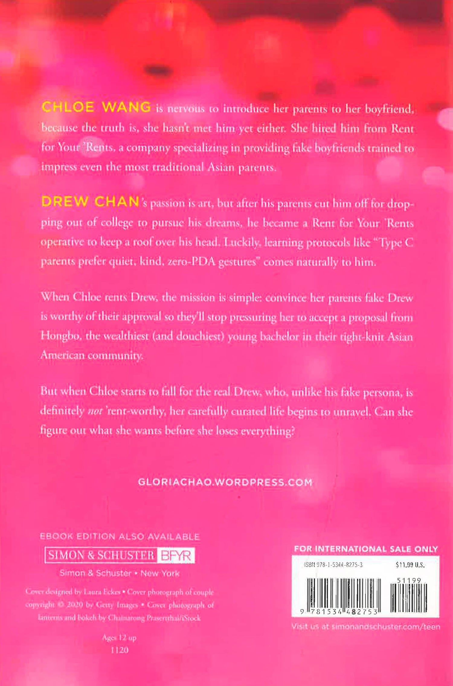 Chloe Wang is nervous to introduce her parents to her boyfriend, because the truth is, she hasn't met him yet either. She hired him from Rent for Your 'Rents, a company specializing in providing fake boyfriends trained to impress even the most traditional Asian parents.
