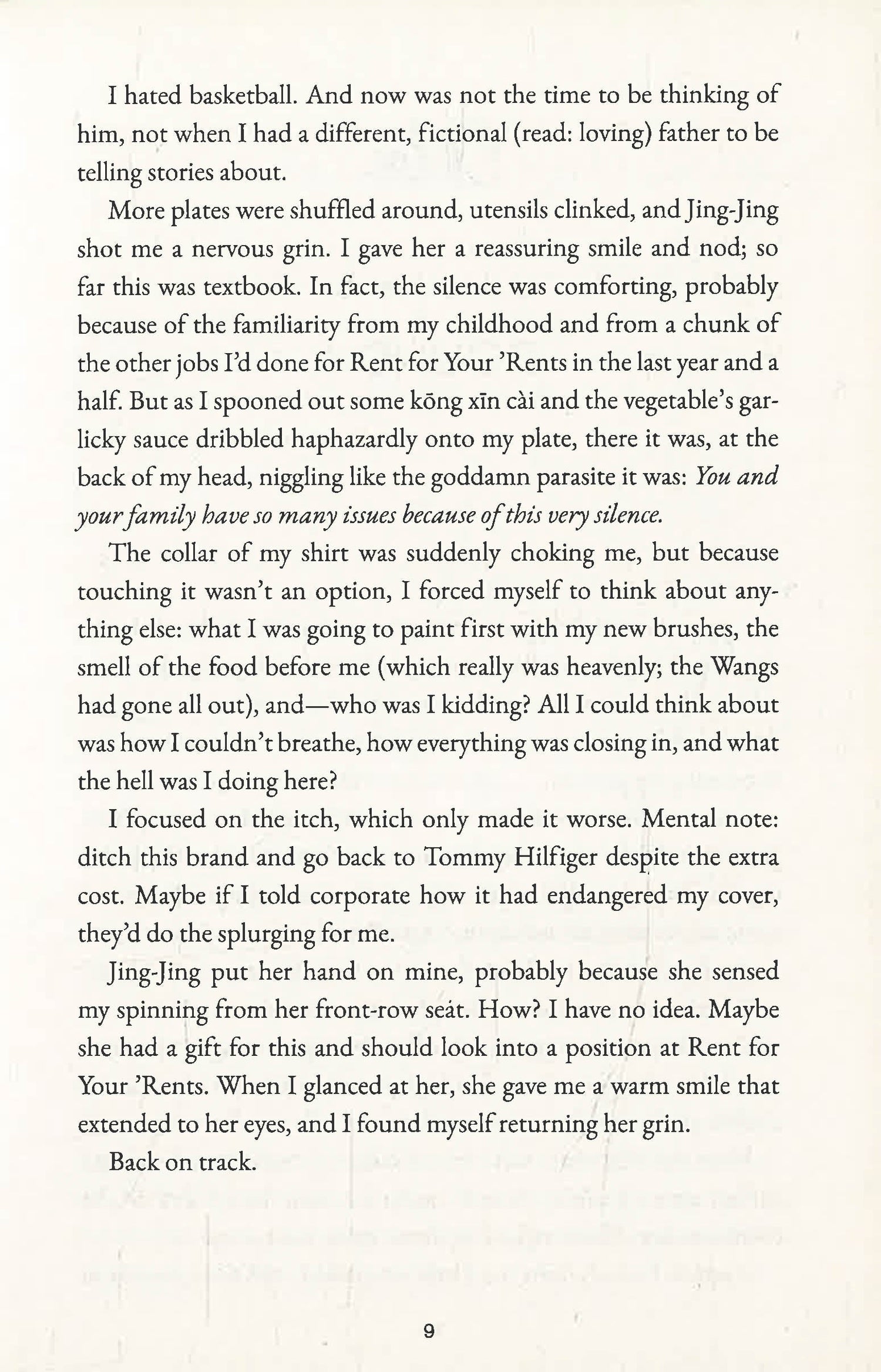 Drew Chan's passion is art, but after his parents cut him off for dropping out of college to pursue his dreams, he became a Rent for Your 'Rents employee to keep a roof over his head. Luckily, learning protocols like "Type C parents prefer quiet, kind, zero-PDA gestures" comes naturally to him.