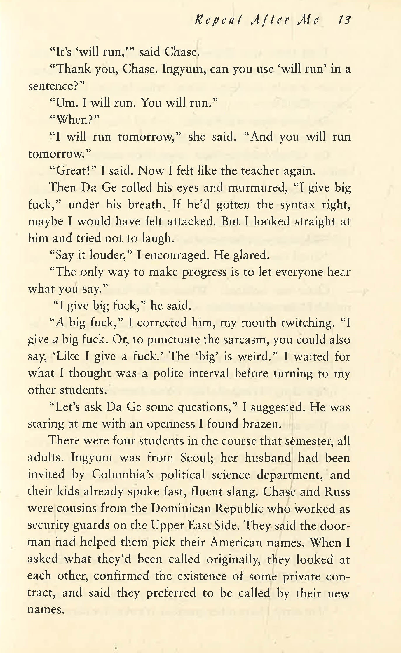 A novel of loss and love in between languages, from the author of "Foreign Babes In Beijing". Ranges from New York to China and takes in Tiananmen Square and 9/11. '"Repeat After Me" is a masterwork - a hilarious, sad, page-turning masterwork' Darin Strauss