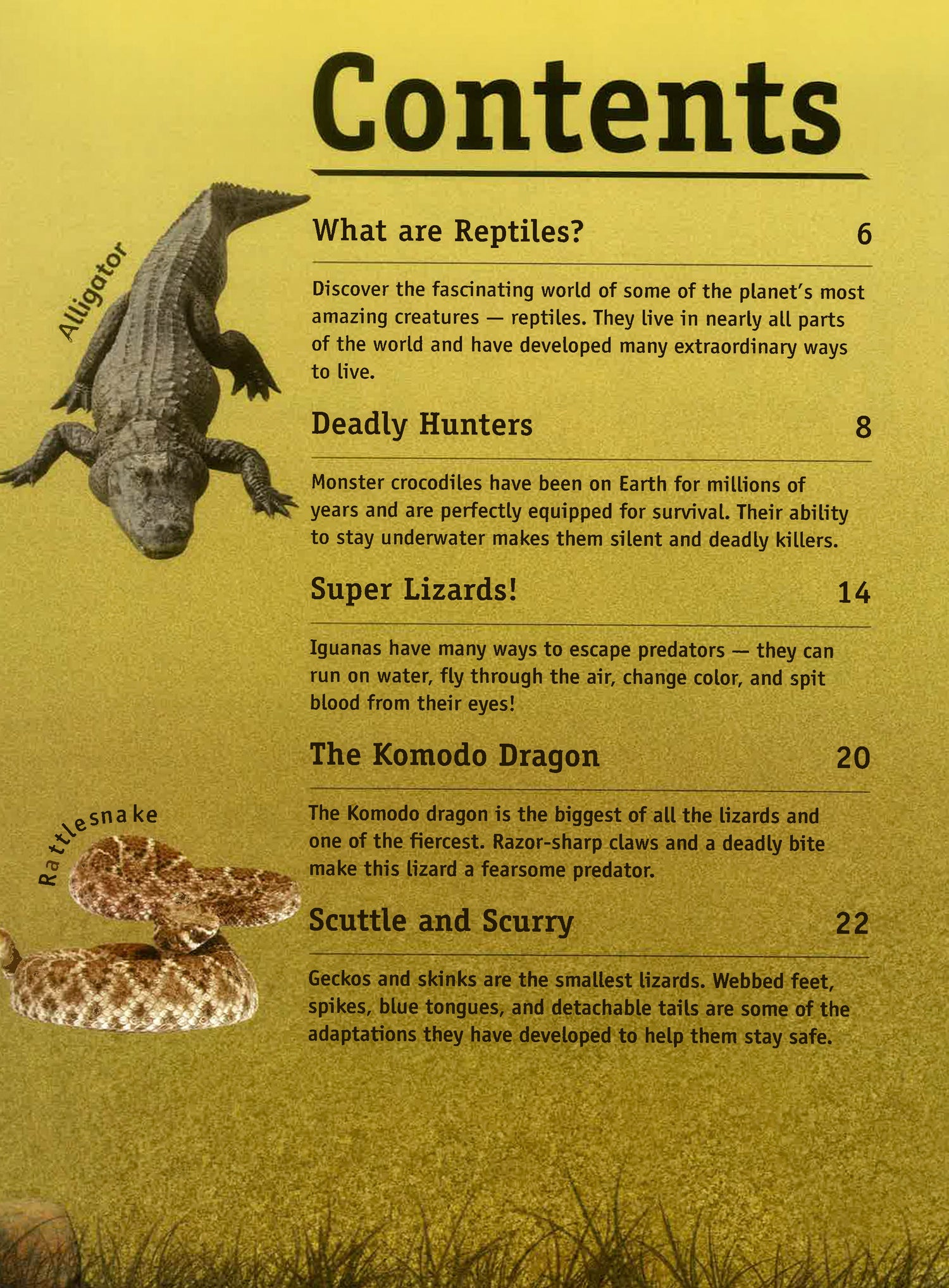 Not just poisonous snakes. Cunning crocodiles, man-eating Komodo dragons, toxic lizards. Weird beasts to make your blood run cold. What is it that makes reptiles so weirdly creepy? Is it their cold-eyed stare? Their flickering forked tongues? Or that some of them have massively deadly venom? Take a walk on the wild side with the world’s scariest reptiles (and a few cute ones). A book of facts, photos and fang-in-face fun.